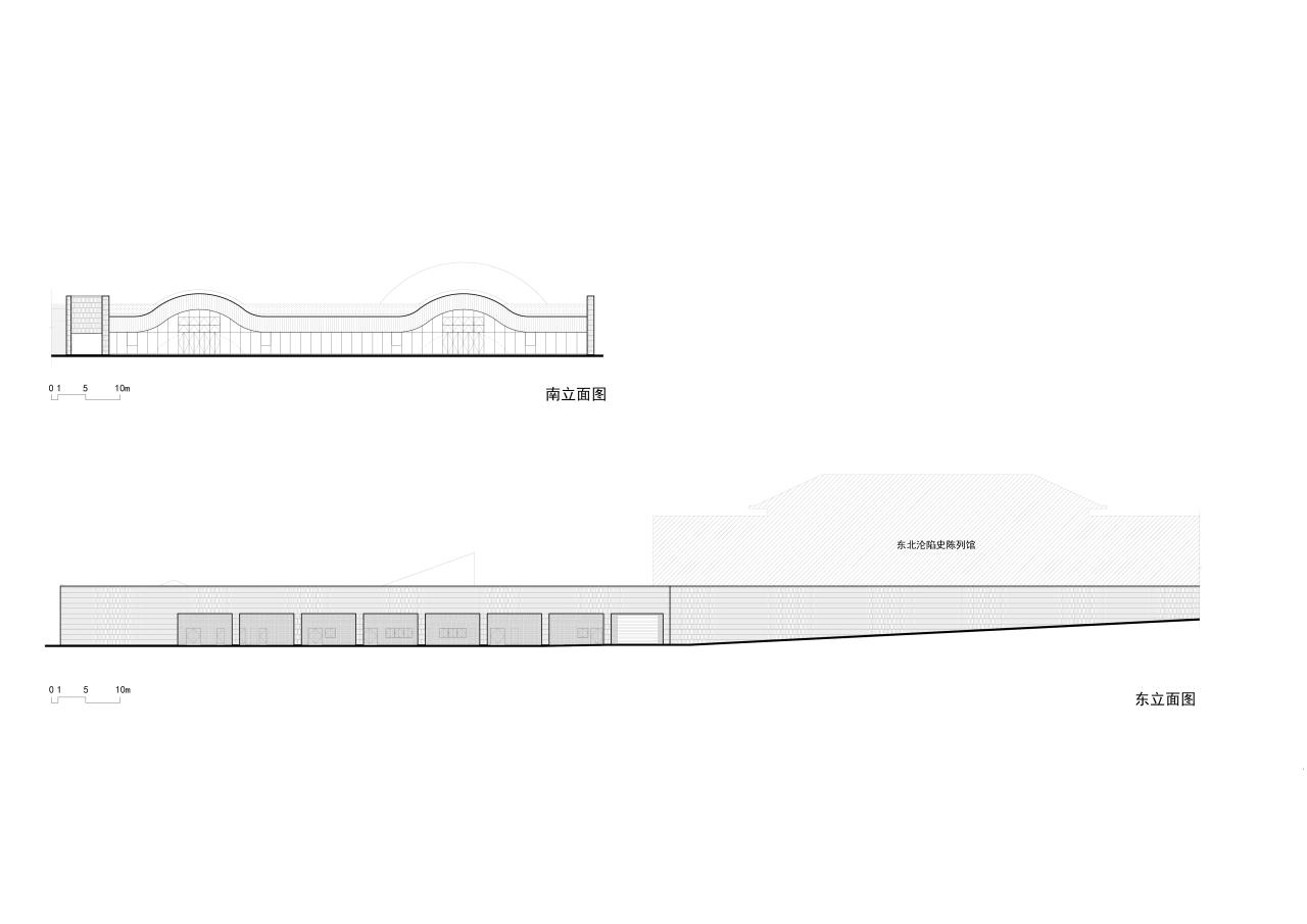 整个连续的屋顶以剖面做立面在南广场戛然而止。在陈列馆门前,视线毫无阻碍。在南广场,大地似乎被掀开一条边。无论如何。第一次来的观众都不会知道大地之下,或者大地的罅隙里面有个深邃的宫殿,让人心驰神迷。