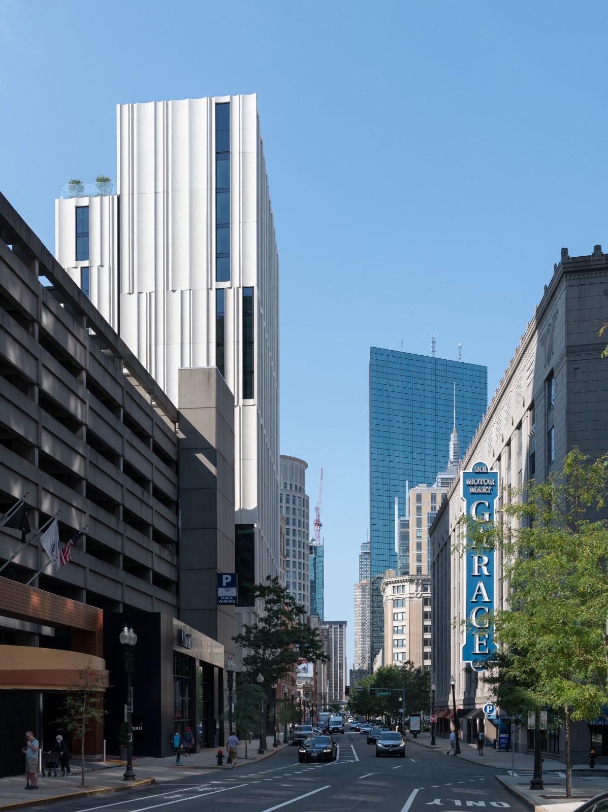 斯图亚特街 212 号位于两个社区之间,对话湾村历史住宅区和波士顿“高脊”建筑集群。它摒弃了城市中比较传统的全玻璃高层建筑,设计团队试图为建筑外立面寻求品质和变化。该建筑采用了创新的材料和施工方法,其独特的立面由弧形凹陷饰板组成,在整个围护结构中饰板尺寸各异,与历史街区砖石等符号产生共鸣。
