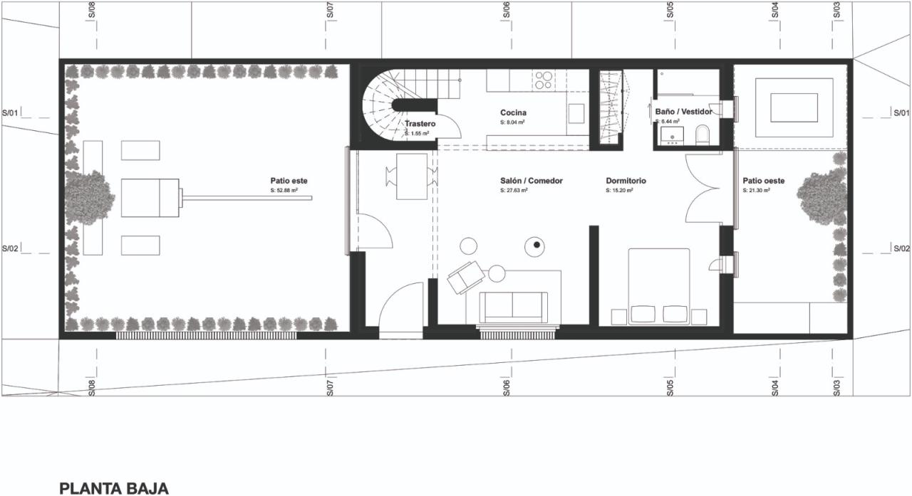 南科尔多瓦 (South Córdoba) 位于一个乡村小镇的郊区,北部被广阔的橄榄园所包围,自由之家坐落其中,以其所在的同名街道命名。作为设想的父母的退休之家,它有一个主房间作为客厅和餐厅,厨房,卧室,浴室,两个天井和一个露台,是作为建筑大师的父亲和作为建筑师的儿子合作的结果。该建筑位于一个 7 x 20 米的矩形地块上,并围绕主轴旋转 45°。换句话说,从表面上看,它的定位和位置在一个没有什么兴趣的城市环境中并不理想。