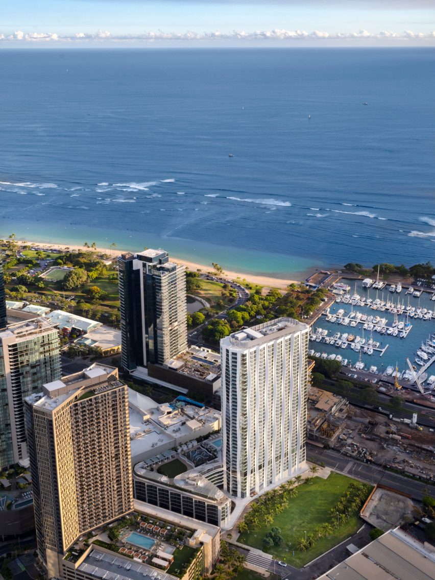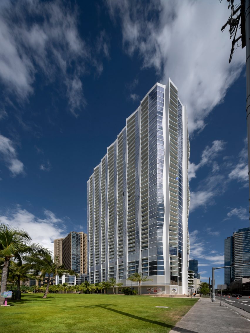 总部位于芝加哥的冈工作室(Studio Gang)在夏威夷完成了一座名为“库拉”(Koula)的住宅楼,其立面呈波浪形,从当地生态中汲取灵感。