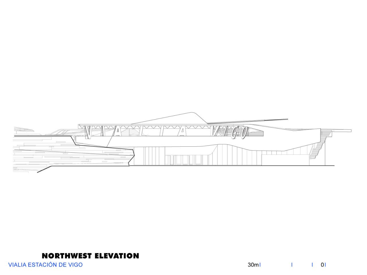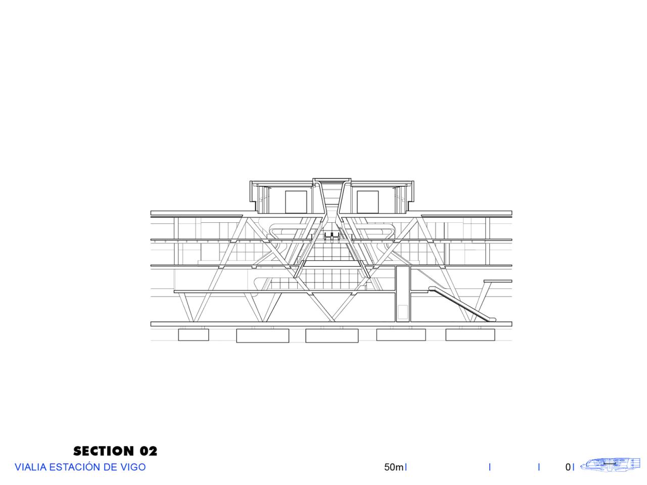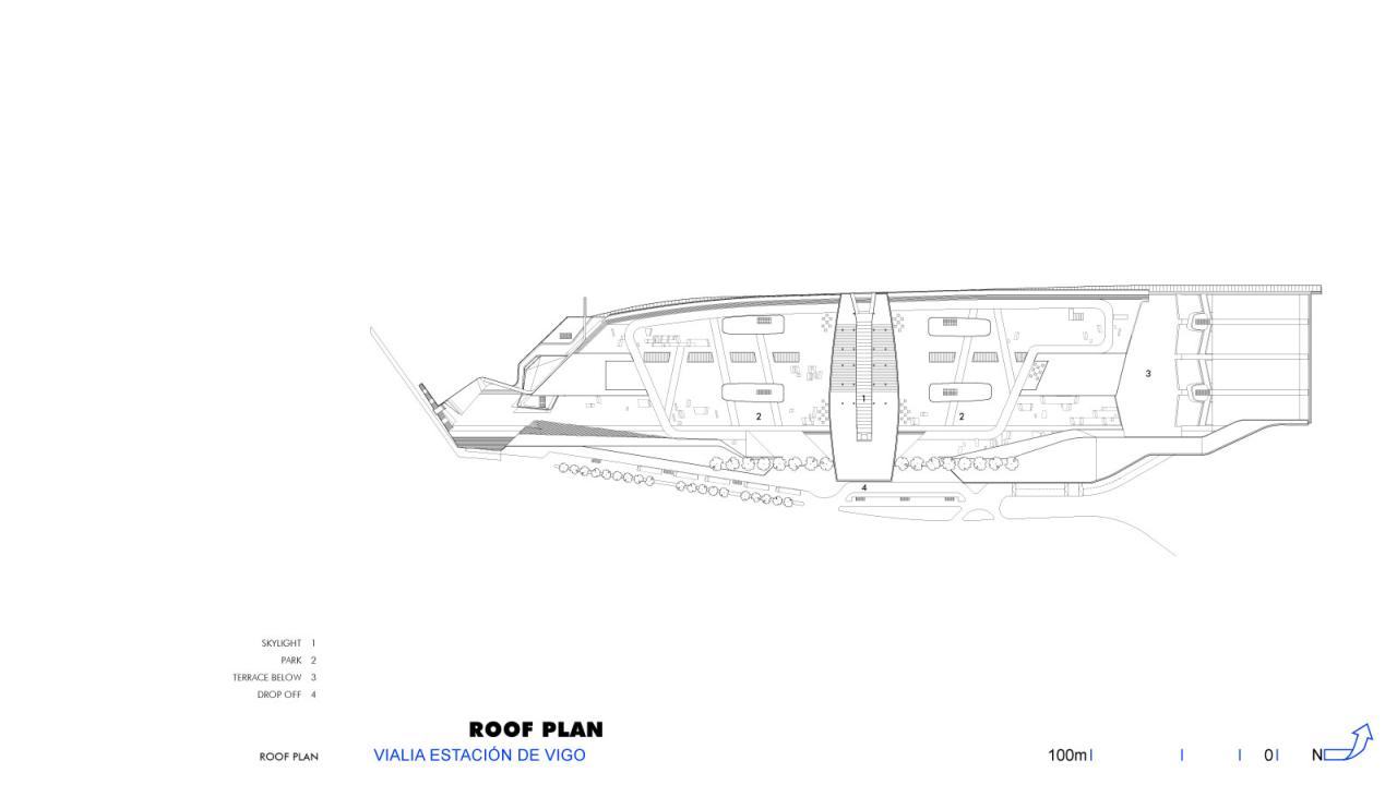 “新高铁线路将比戈高铁站定位为这座城市的新都市中心,并使其与更广泛的区域联系起来。作为最主要的目的地,该项目将海湾和既有城镇连接起来,发挥了其场地高差的特性,如屋顶平台作为高架广场,为商业活动提供了场所和开阔的视野。这座高铁站重新设计了城市,扩大了建筑作为城市连接组织的意义。”