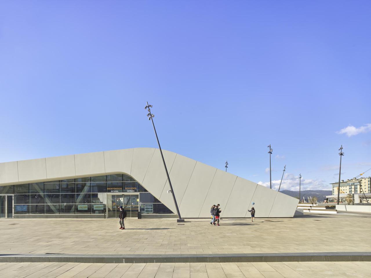 建筑的三面都嵌入城市肌理之中,而北侧立面则覆上穿孔钢板,朝向通往比戈的主要高速公路,展现出宏伟的姿态和富有动感的形象。