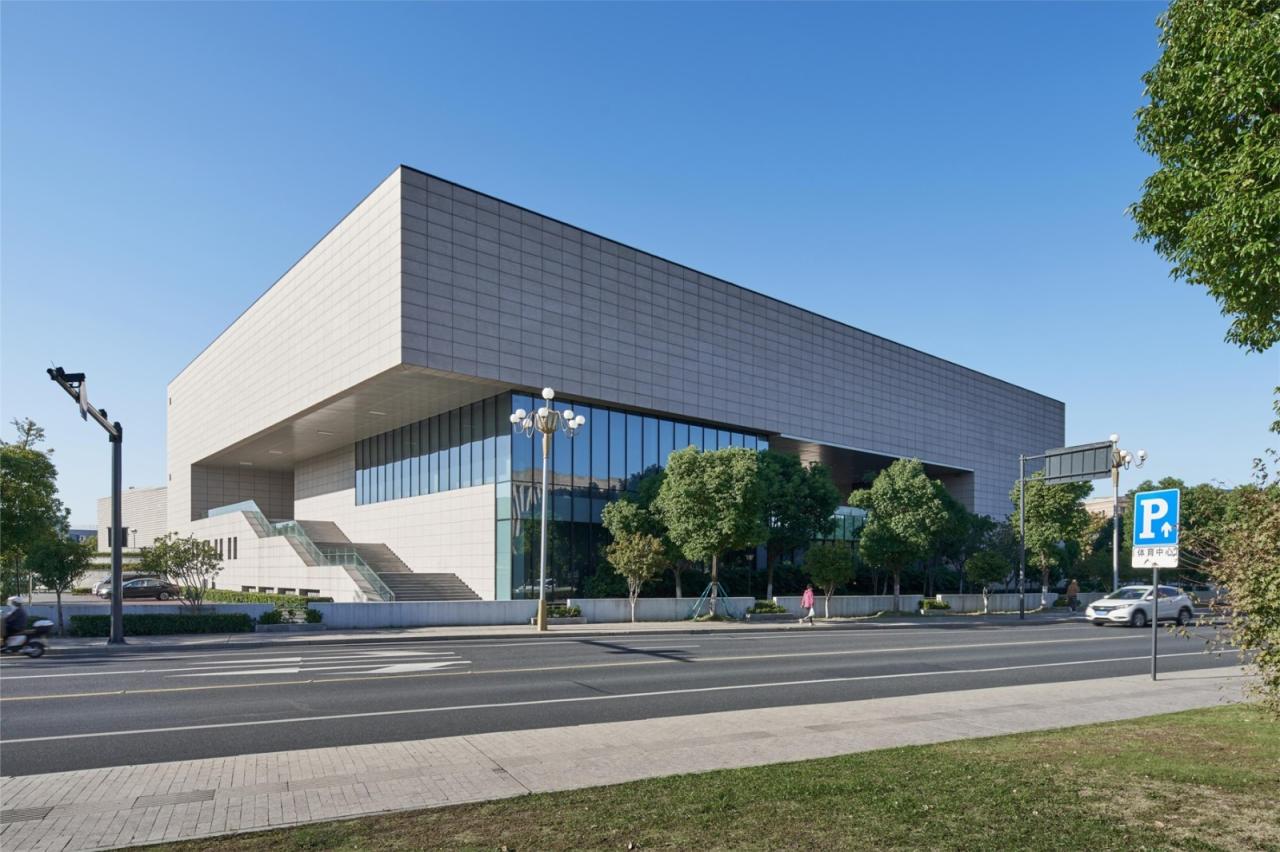 博物馆与图书馆老馆原有立面风格迥异,同时与革命纪念馆立面反差较大,设计师采用化繁为简的方法,通过简单硬朗的几何形与线性元素进行空间与形态的组织。