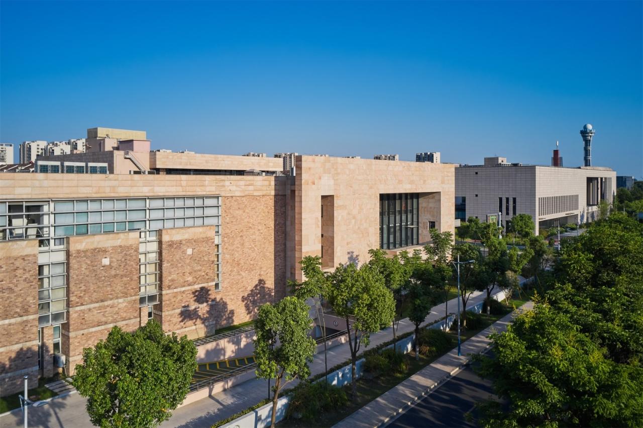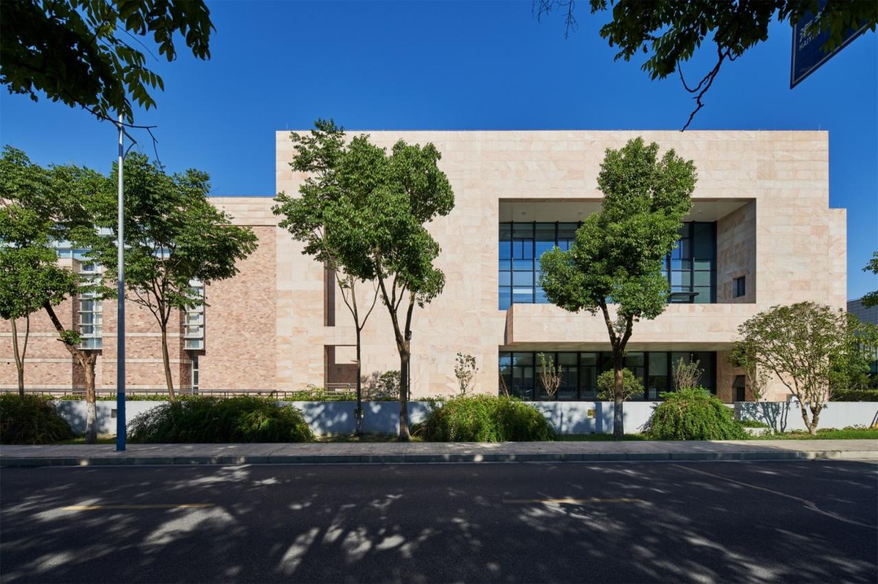 博物馆新馆位于旧馆北侧,在外部简洁的建筑形态与材料的统一之下,更强调建筑内部的围合与庭院规划,以及新建部分与原有建筑之间产生的过度空间设计。图书馆新馆位于旧馆南侧,新旧部分以内庭院为中心进行围合,形成通透和连续的空间序列。庭院、露台、开放的公共空间相互组合,收放有致。