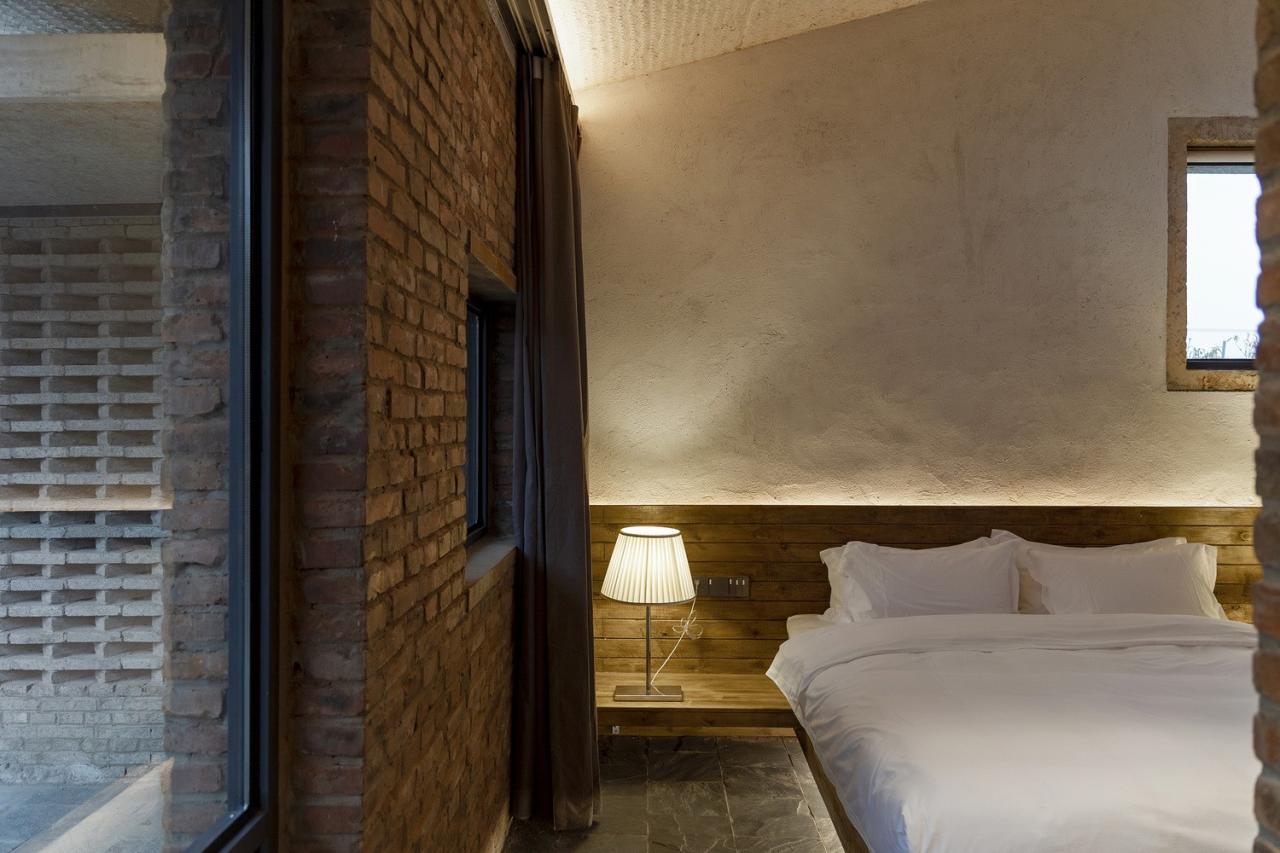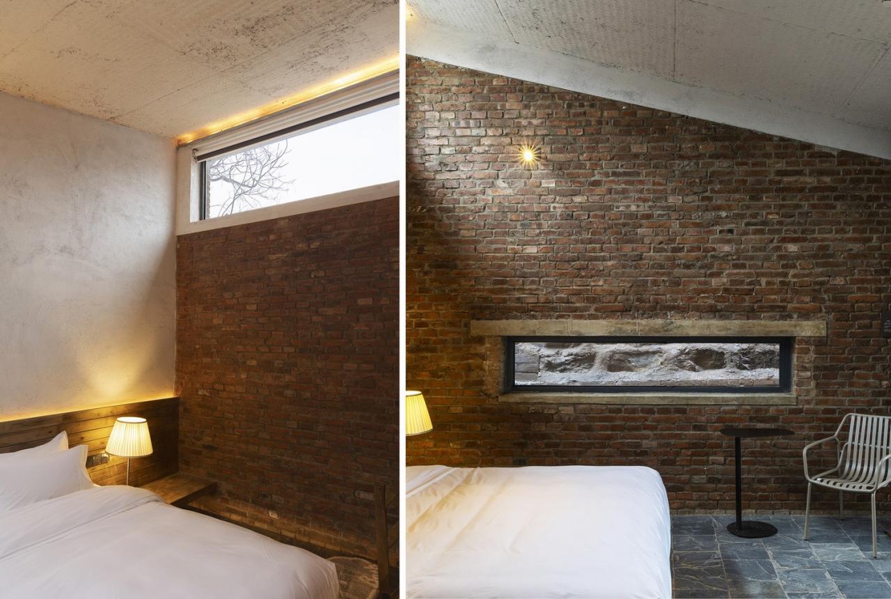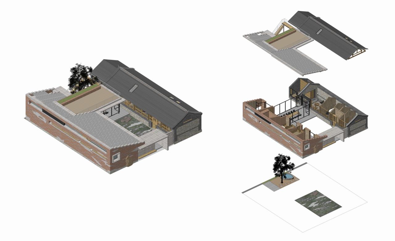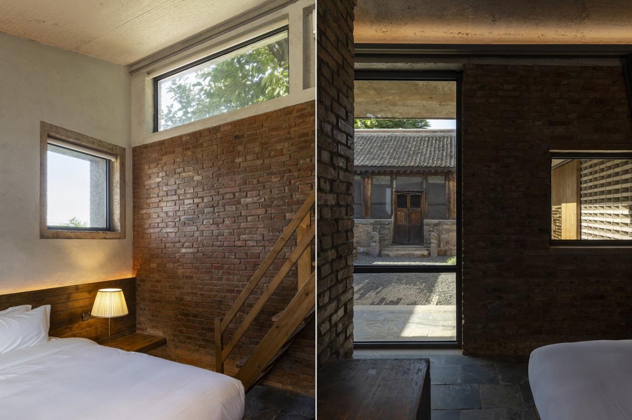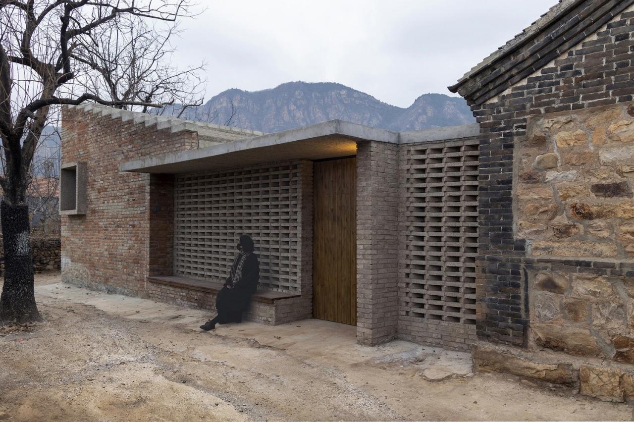 设计师在勘察本村风貌时,发现村落生长过程中由于物质相对匮乏激发的建筑智慧 ——利用现成的建材如红砖、瓦片、混凝土空心砌块、预制混凝土条板堆叠在一起呈现出一种粗旷、自由生长的建筑趣味。于是,建筑师借鉴了混砌的作法——运用改造时回收的红砖、毛石与现代材料进行搭配混砌。