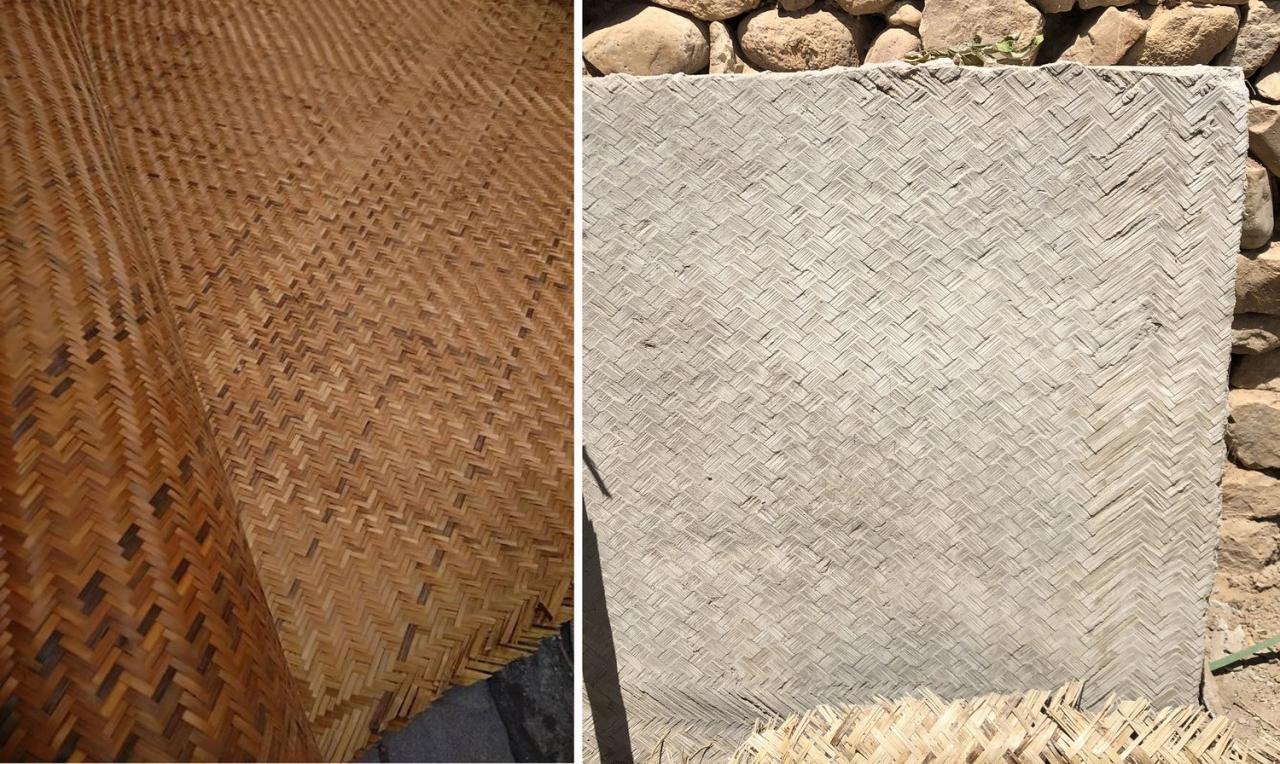 混凝土的浇筑模板运用了农村家用品—藤席作为模版拓印到其表面,从而给混凝土带来一种乡村生活温情。诠释独属于农村质朴与粗旷的质感。