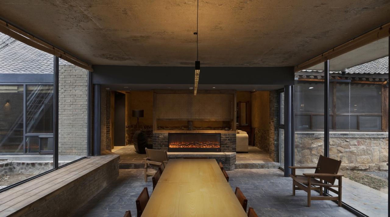 院内设置大小两个孪生院子,两个院子不同的尺度、位置和围合方式形成了不同氛围的生活场景。连接新、老建筑的低矮体量作为露台让人感受更加开阔的山景与村落景象。