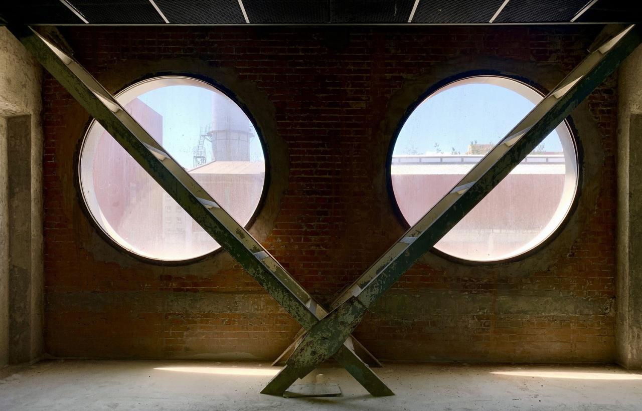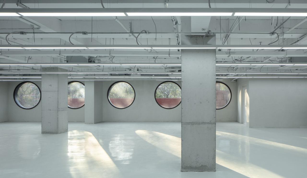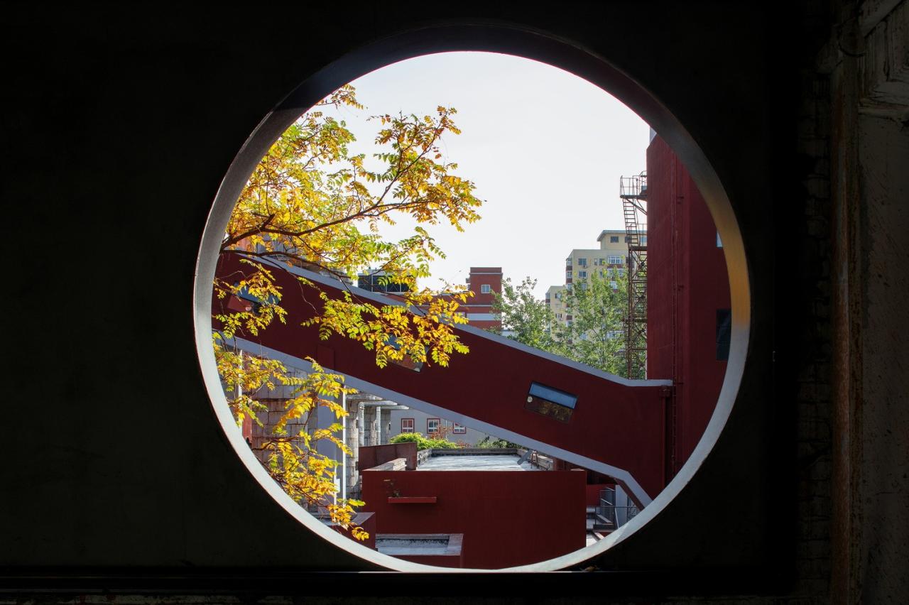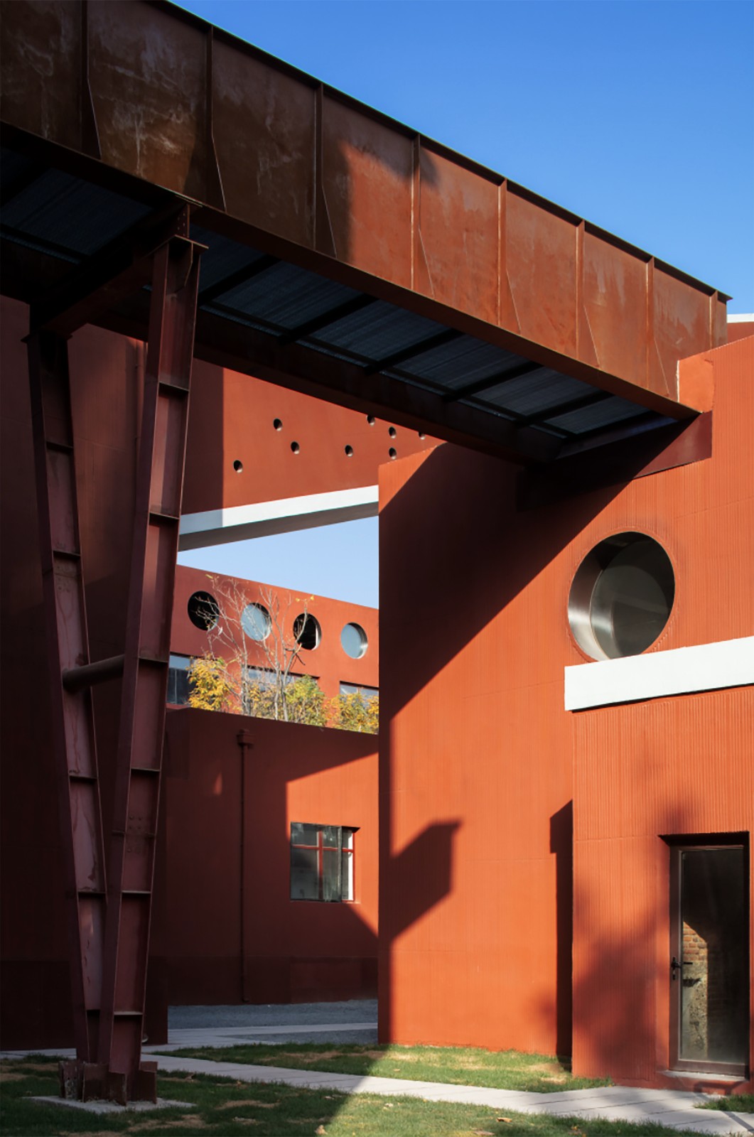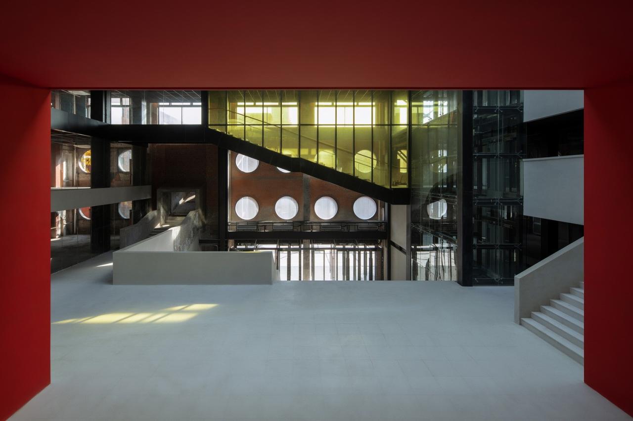 开凿瞳孔厂区锅炉房、煤库、引风机间等主要建筑原用于容纳设备和燃料,空间高大、封闭、幽暗,如同沉睡中的无眼巨兽。基于原有砌体外墙的构造特性,400多个圆孔被精心开凿出来,以实现最大通透性和最小砌体安全扰动的平衡。阳光、空气涌入建筑内部,驱散黑暗、留下独特光影。瞳孔般的洞口重塑了每一处窗外风景的形状,引导室内面向外部雄浑工业遗迹的时光凝视与对话。圆孔序列与原有的少量方窗相区别,赋予园区新的烙印。原地建筑采用不同规格的大圆窗、小光孔和圆风口对应不同的功能,还定制了特殊的洞口构造和开启方式,保证通风排烟的通畅与充足。