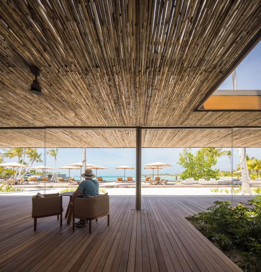 总部位于巴西的 MK27工作室使用木材、藤条和石头纹理为马尔代夫法里群岛(Fari Islands)的度假胜地打造了建筑。
