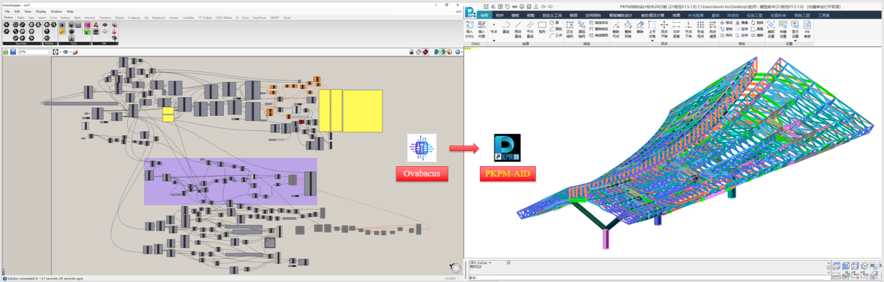 经过多年自主研发,奥雅纳打造了Ovabacus参数化设计平台,辅助工程师实现智能设计。平台包含参数化建模和分析模型转换功能,并对接PKPM-AID智能优化设计系统,可有效帮助结构工程师进行方案响应和分析研究,快速判断合理的结构受力体系,确定结构构件尺寸,完成经济性比选,达成更高效、更经济的设计目标。