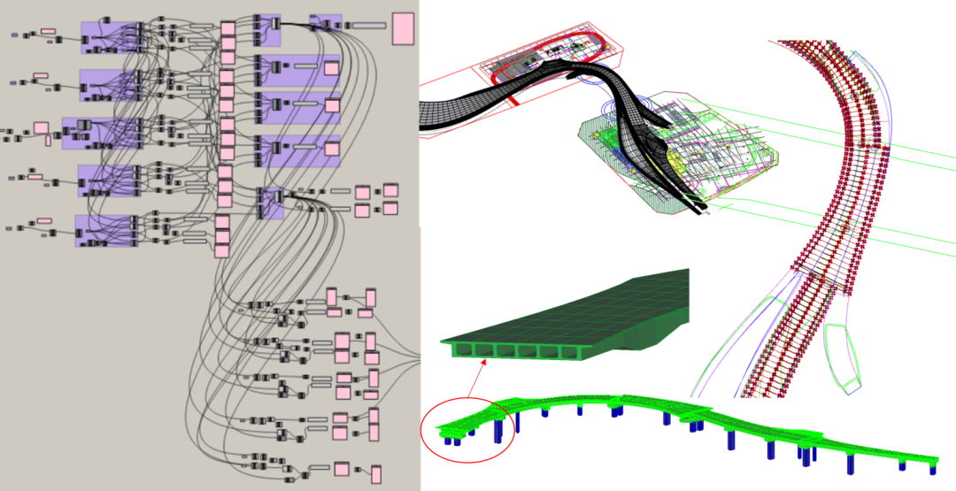 团队采用参数化建模手段,细化剖分桥身几何体块,不断调整修正桥身形态变化规律,确保施工可行性和便利性。