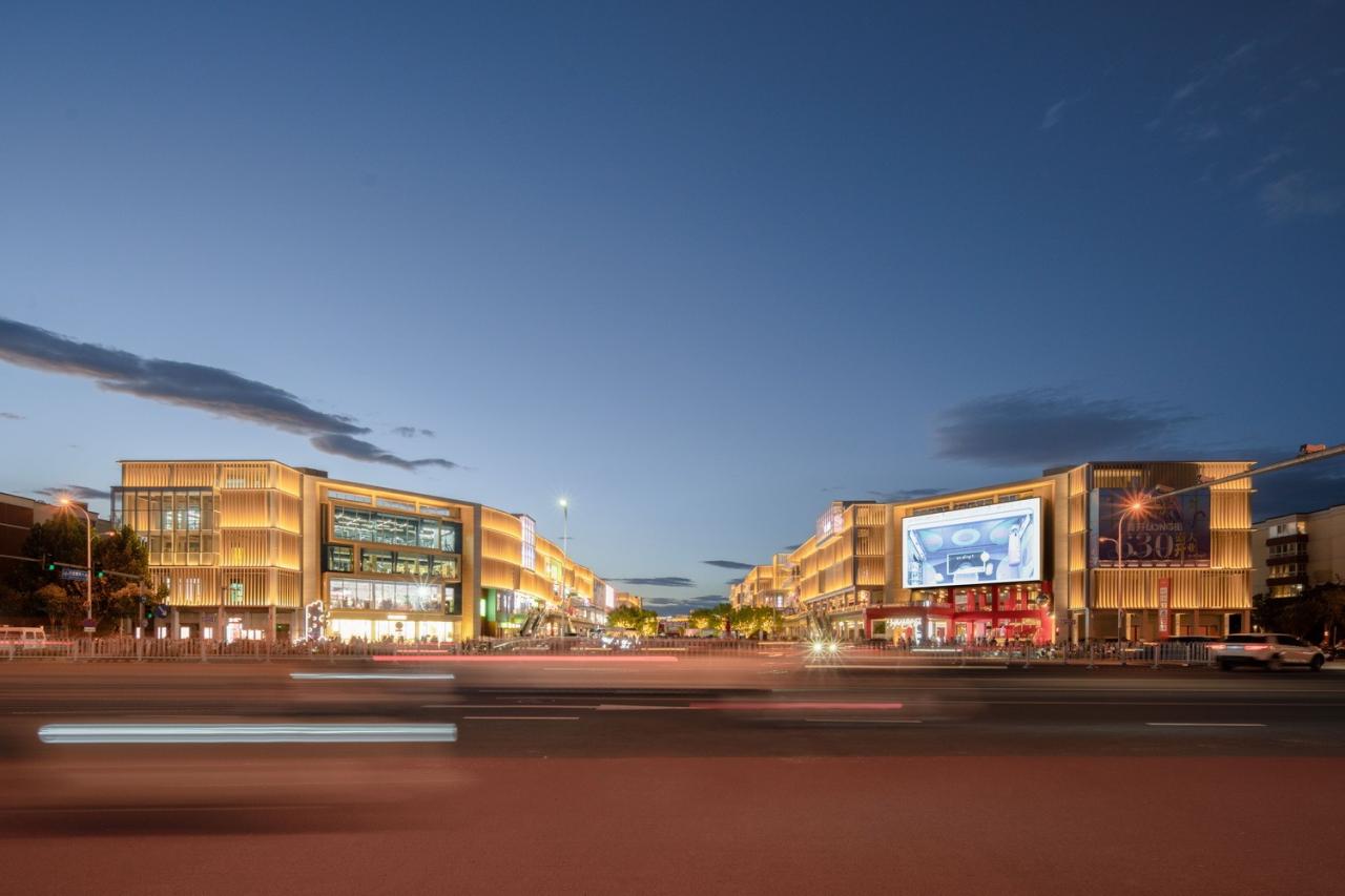 多样的商业店招提升了整条商业街的烟火气,除了各家商户的店招,点缀在“格栅”立面上的LED侧招,通过数字化管理实现联动,与轻置于屋顶的大型玻璃橱窗一起营造出热闹非凡的商业氛围。传统木格栅与现代立面元素的强列对比,为项目赠添一分奇幻之感。