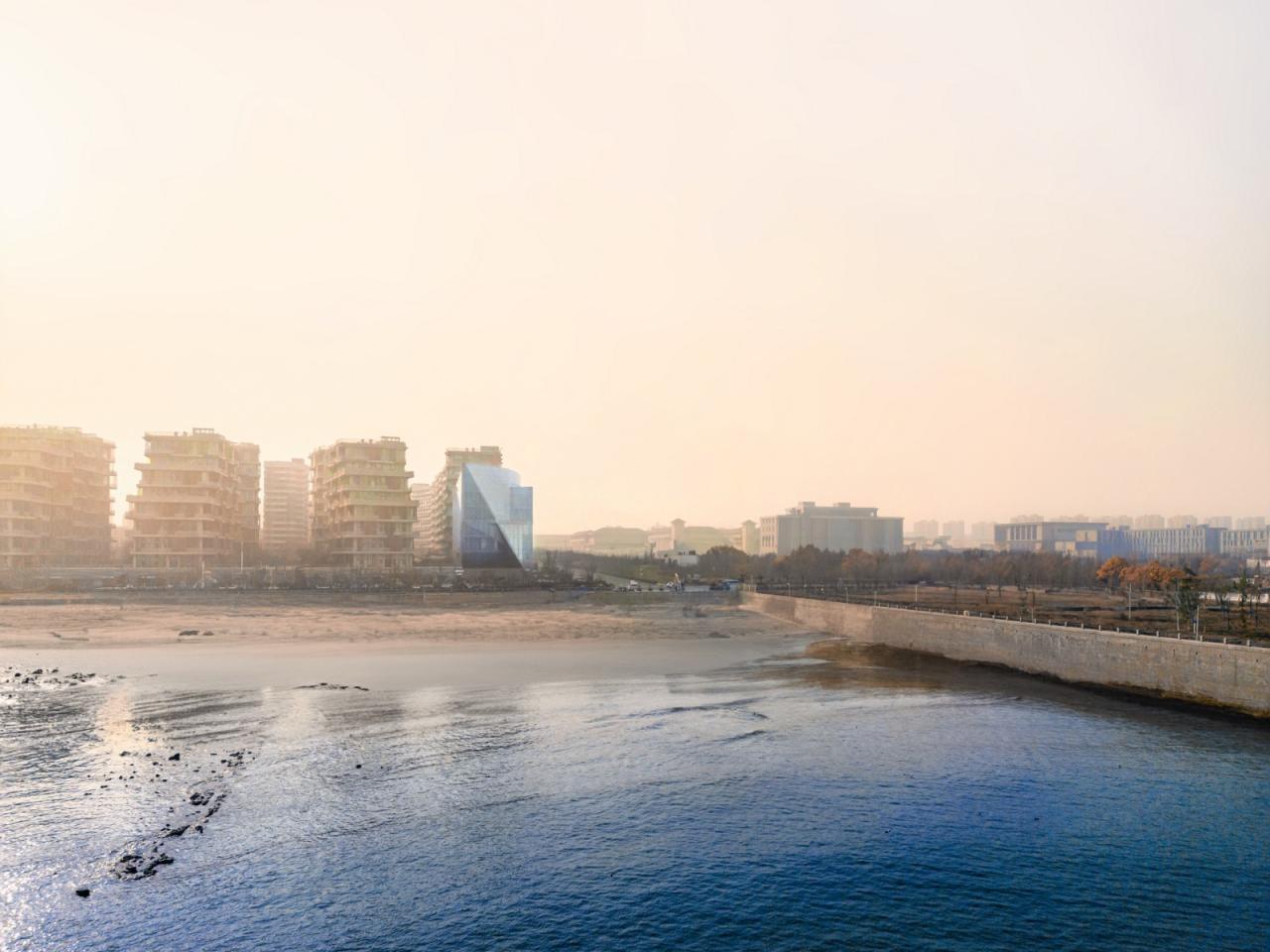 项目坐落于山东黄岛时尚产业园的公寓小区的角部,正对着有潮汐变化的大海,是时境建筑的“垂直潮汐”项目的一次延伸。建筑共5300平米,共6层高,首层与外部交通相通,拥有时装发布和展厅的功能,二层与公寓小区相通,和之上的4层都是设计师的联合办公空间。