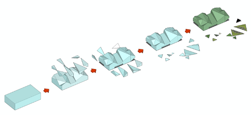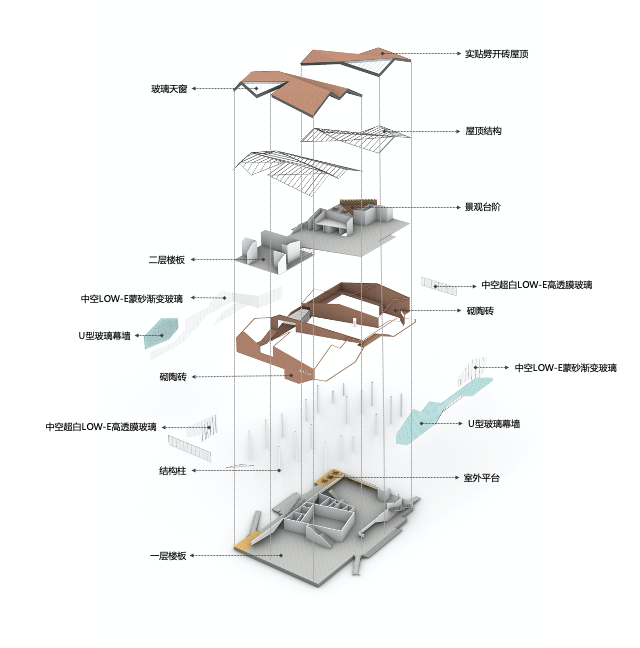 用折线而非曲线,似是有悖于“玉”的圆润。但袈蓝希望营造一种“中间态”,建筑是一枚“未完形的玉”,雕琢、打磨的“锉刀”理应交给建设者和使用者。