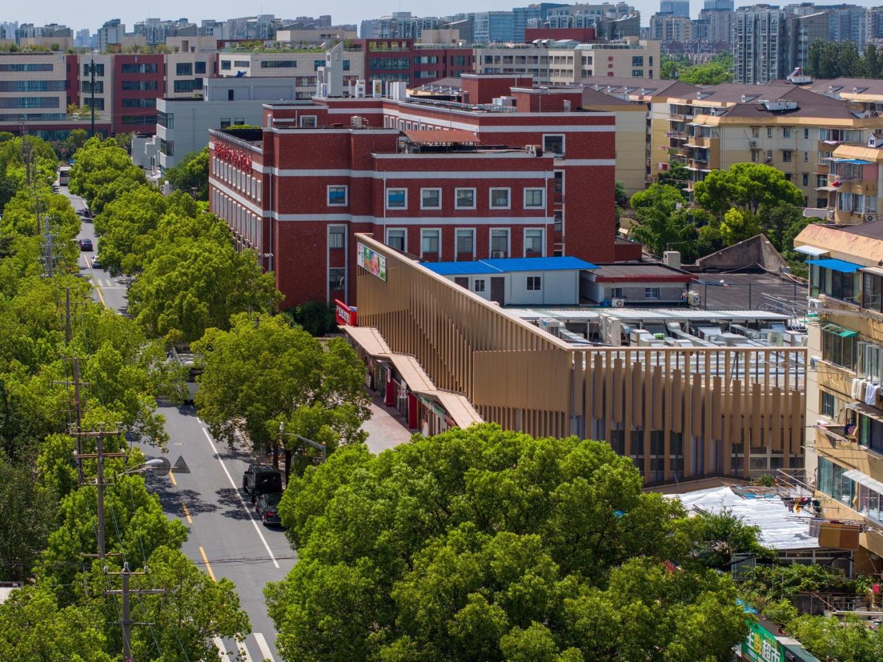 项目所处的中原居住板块,是上海90年代典型的 “新村式”居住区。这类“高龄”小区有相对熟识的邻里环境,生活氛围浓厚,但也普遍缺少公共性强的开放空间和绿化。而菜场不仅是居民日常生活的一部分,也是城市重要的公共空间。综合这些因素,设计最主要的出发点是承接周边小区“溢出”的这部分公共活动需求,创造高品质的社区邻里空间,并尽可能保留“熟人社会”的人情味。我们认为,这种人情味正是邻里关系的精髓。