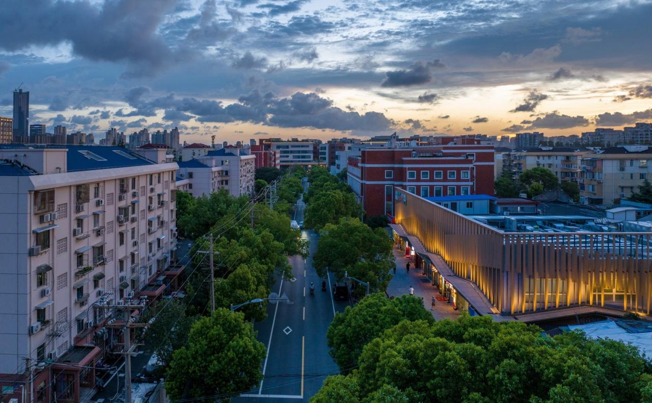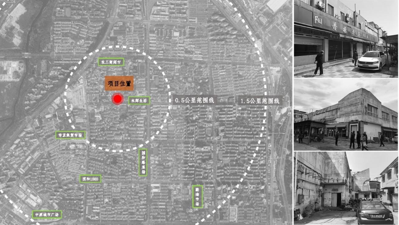 阳普邻里·振原项目位于杨浦区开鲁路,升级改造前是杨浦商贸(集团)所属的阳普振原菜场。仅3个街区之隔,是我们于2019年完工的勤海睦邻中心——第一个由菜市场升级为小型社区邻里中心的案例。作为其姐妹篇,振原菜场的改造是勤海模式得到市场验证后的经验复制推广。业主希望以此项目为契机,建立“阳普邻里”品牌,让其成为未来社区生活的新样板。