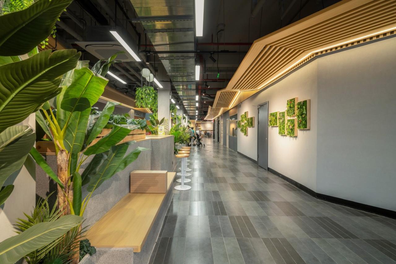 设计以一条“屋檐下的街市”为流线组织功能,一方面让室内外以统一的元素获得形式上的延续,丰富了空间层次感;另一方面,街市作为室内的主要流线,串联菜场、社区工坊、餐饮等多种业态,营造一种放松、自由、富有松弛感的日常生活场景。