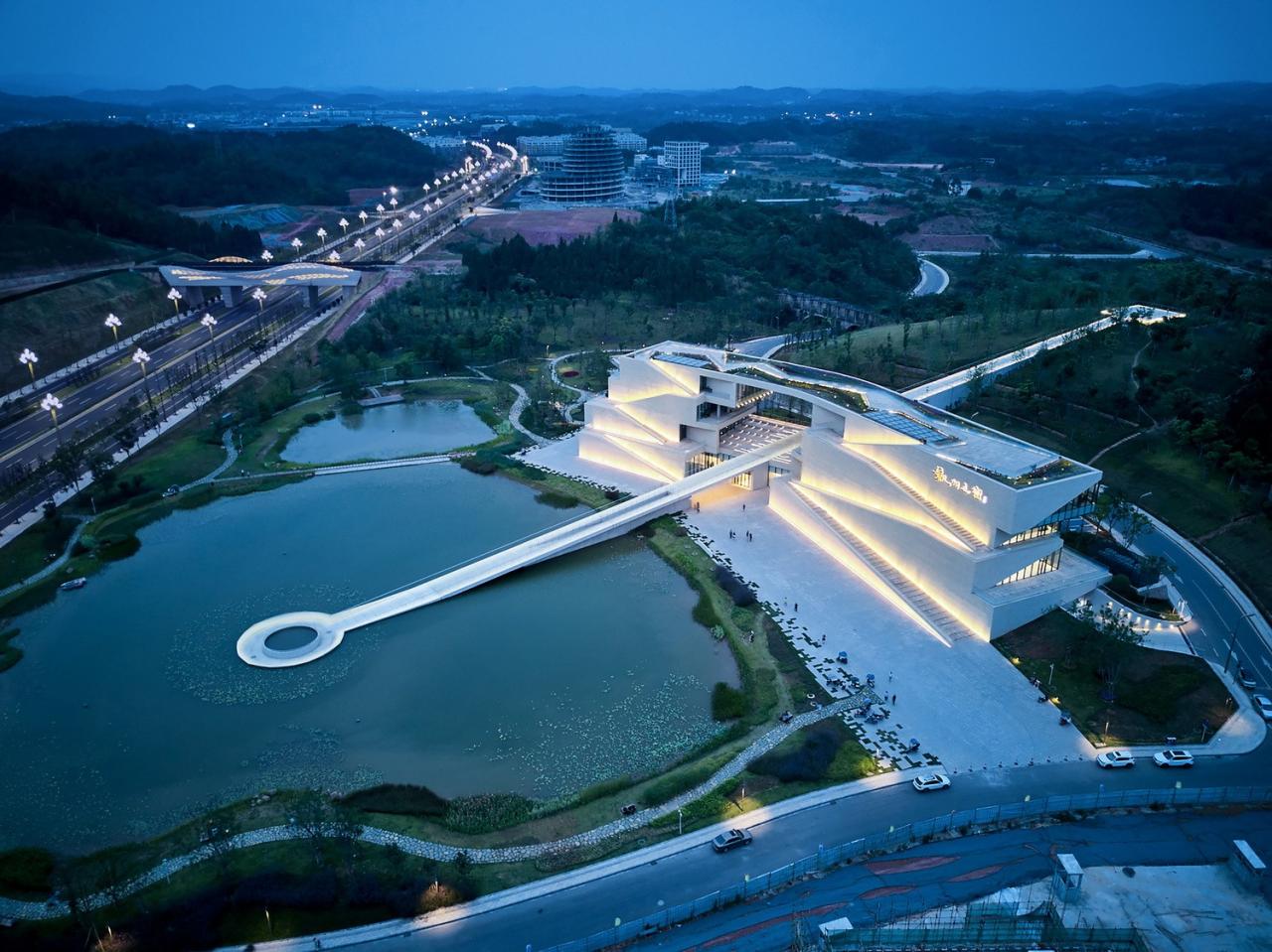 凯州新城规划展览馆位于凯州新城启动区范围内,毗邻新城两轴交汇之地,横轴是人民渠公园——启动区核心景观带,纵轴是中金快速路——联系新城市群的纽带。地处新城建设及发展的龙头地带,意味着规划展览馆既是新城的重要公共空间,也是新城对外最直接的展示窗口。