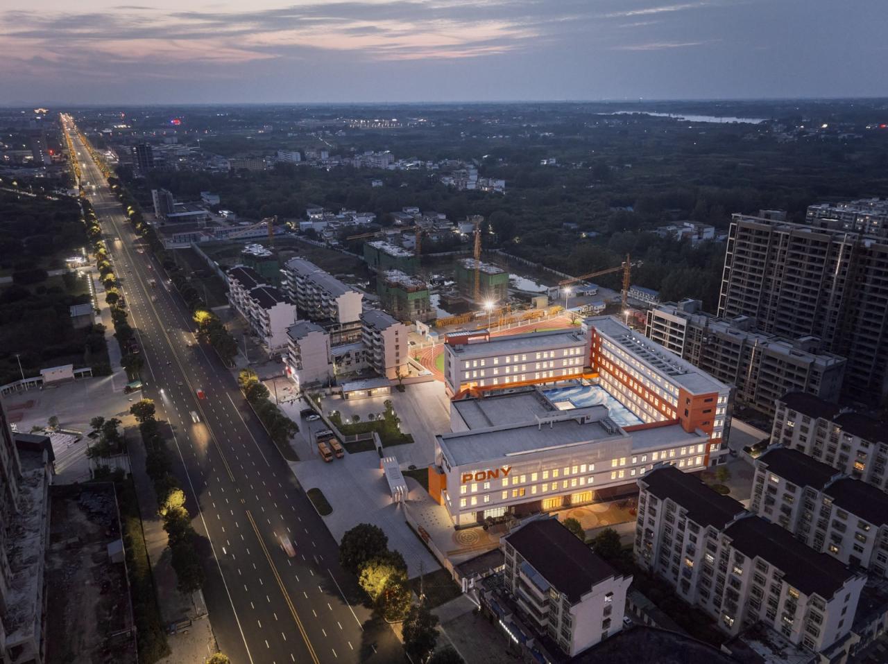 三面围合的新校区仿佛一个笼子,将小县城生活的闲适与自然隔绝在外。由于原始建筑已接近完工,为尽可能控制成本,避免浪费,设计只能如泥鳅钻豆腐一样展开。这是一次与时间赛跑,与无聊战斗的改造,在建筑造型、格局、面积几乎都不可变的情况下,将原本秩序森严的学校,抢救为会被孩子们喜爱的乐园。