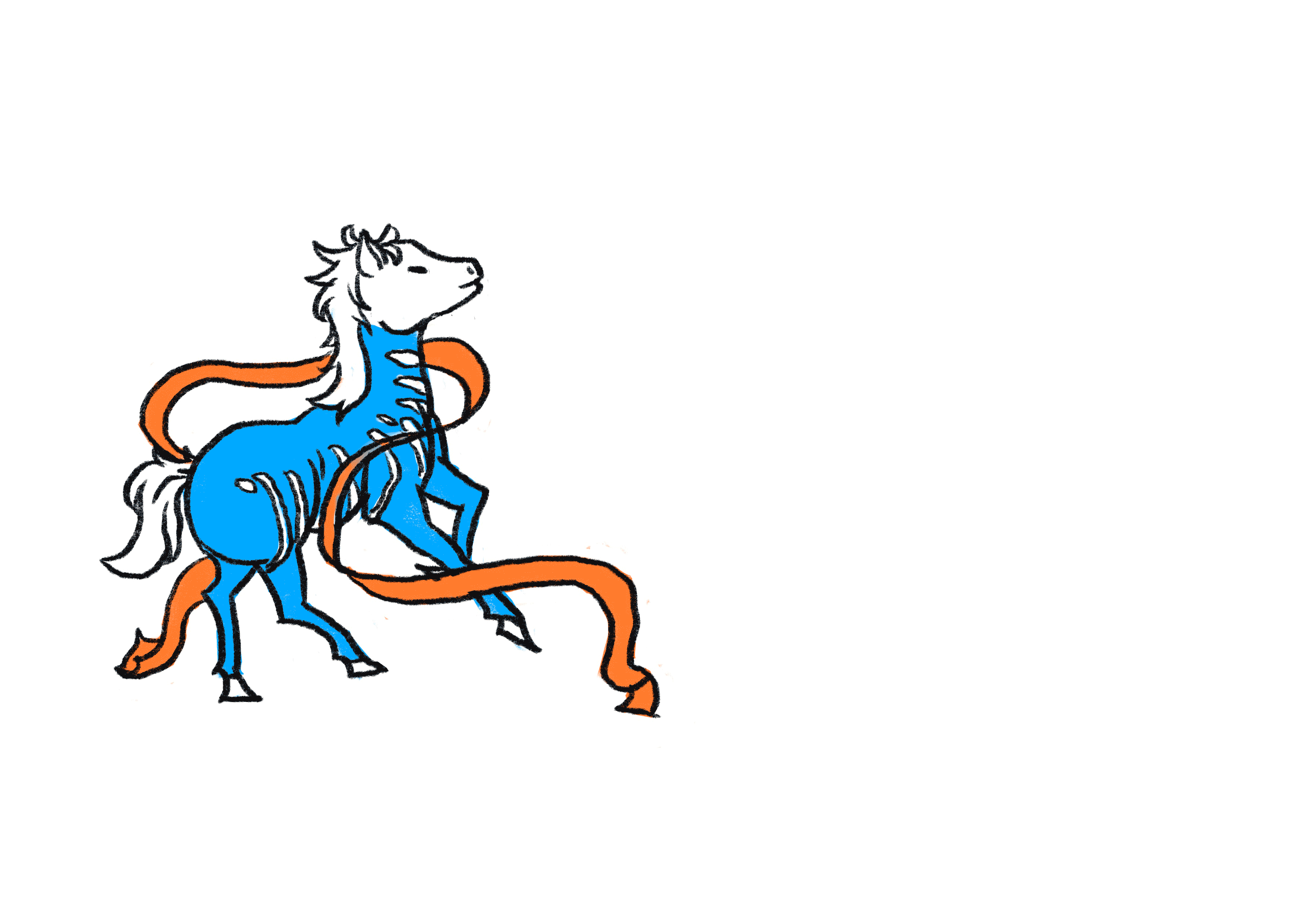 一只蓝色的小马跑进了这所小学,他戴着混天绫玩耍了一整天,此刻正在酣睡,露出可爱的小马蹄。混天绫是一条巧妙的线索,串联起小学的主要公共空间。