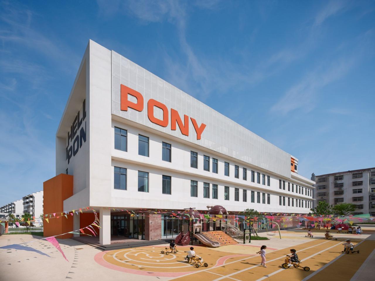 送你一匹小马U型建筑布局围合出的二层屋顶活动平台原先曾是一片消极的空白,设计将其改造为高低起伏的儿童活动场地,并以斑马条纹为场地赋予了生命。从教室向下望去,酣睡的小马温柔可爱,用自己的身体为孩子们提供着安全好玩儿的课间运动场地。由于睡得太香,一只马蹄不知不觉伸向了远方,一不小心踏出了一个别具一格的多功能厅入口。