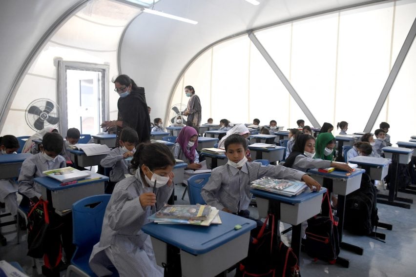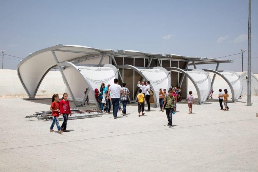 伦敦扎哈-哈迪德工作室(Zaha Hadid Architects)为流离失所的社区居民创建了一系列帐篷式教室,由已故的扎哈-哈迪德(Zaha Hadid)和现任负责人帕特里克-舒马赫(Patrik Schumacher)设计。