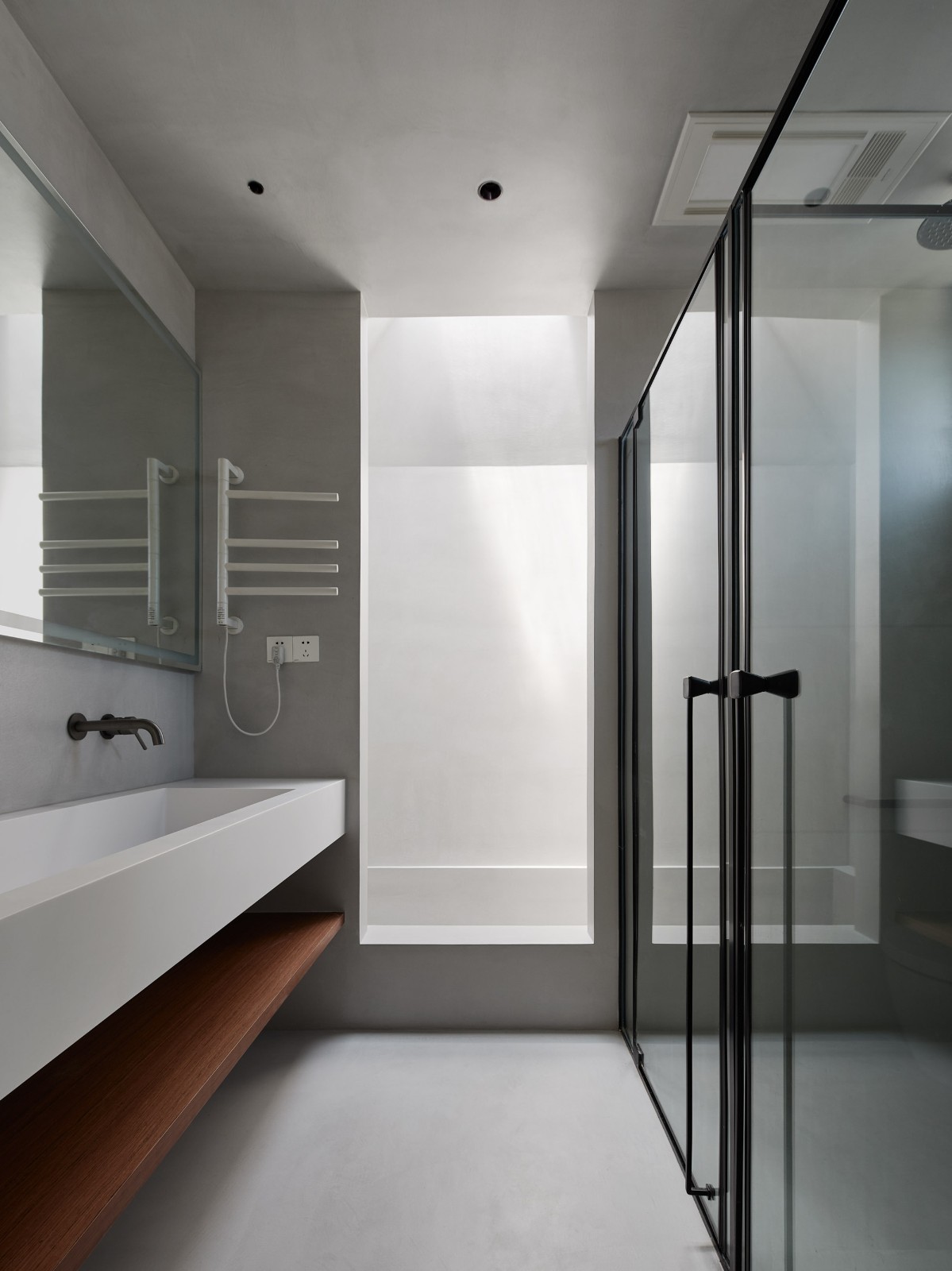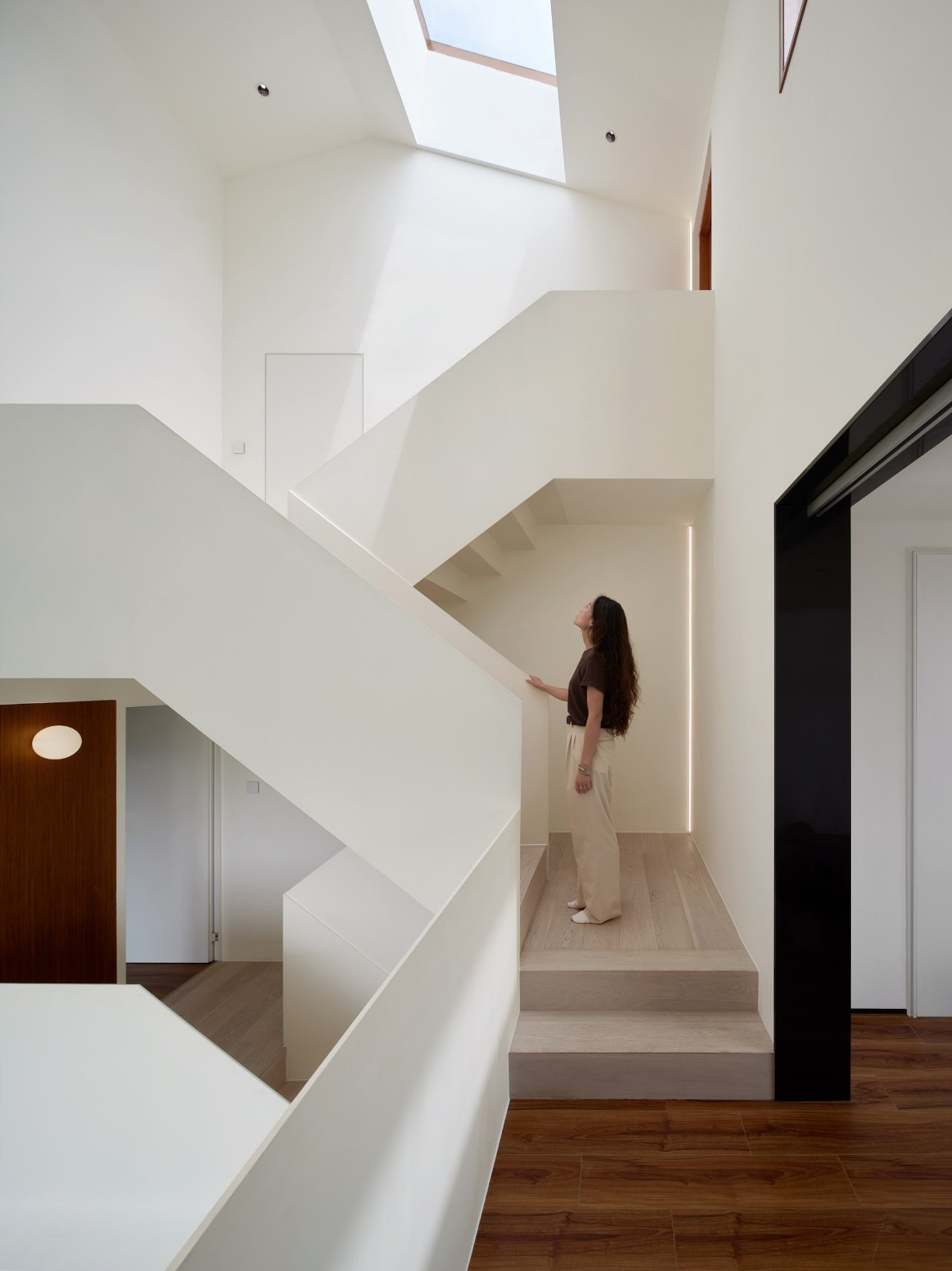 城——公区与私域二层以上是80后子女一家的生活空间,通过换鞋这个简易仪式,提示人们将进入一个更为私密的领域,也谢绝了不速之客的突然造访。二层设有起居室与书房,它是实际意义上的现代住宅客厅,80后子女一家在此起居与会客。起居室联通上下两个中庭,是“城”“乡”连接点,高达10米的通高赋予这个空间强烈的仪式感,也将二层以上的小家庭生活联系在一起。尽管彭宅从外观视觉上仅2层半,但内部通过错层设计,翻新后的彭宅实际有4层。设计将彭先生的书房,孩子卧室与书房,主卧与妻子书房等分设不同层,保证每个家庭成员的私密与独立。我们在每一层都设有书房,使80后小家庭的所有人都有独立的工作、阅读、娱乐空间。随着时代变迁,在城市生活方式的影响下,私人空间在家庭中的重要性日益凸显。相对于全家挤在一起看电视,人们开始更愿意在自己的空间里使用电子设备,去阅读或观看自己更感兴趣的内容。