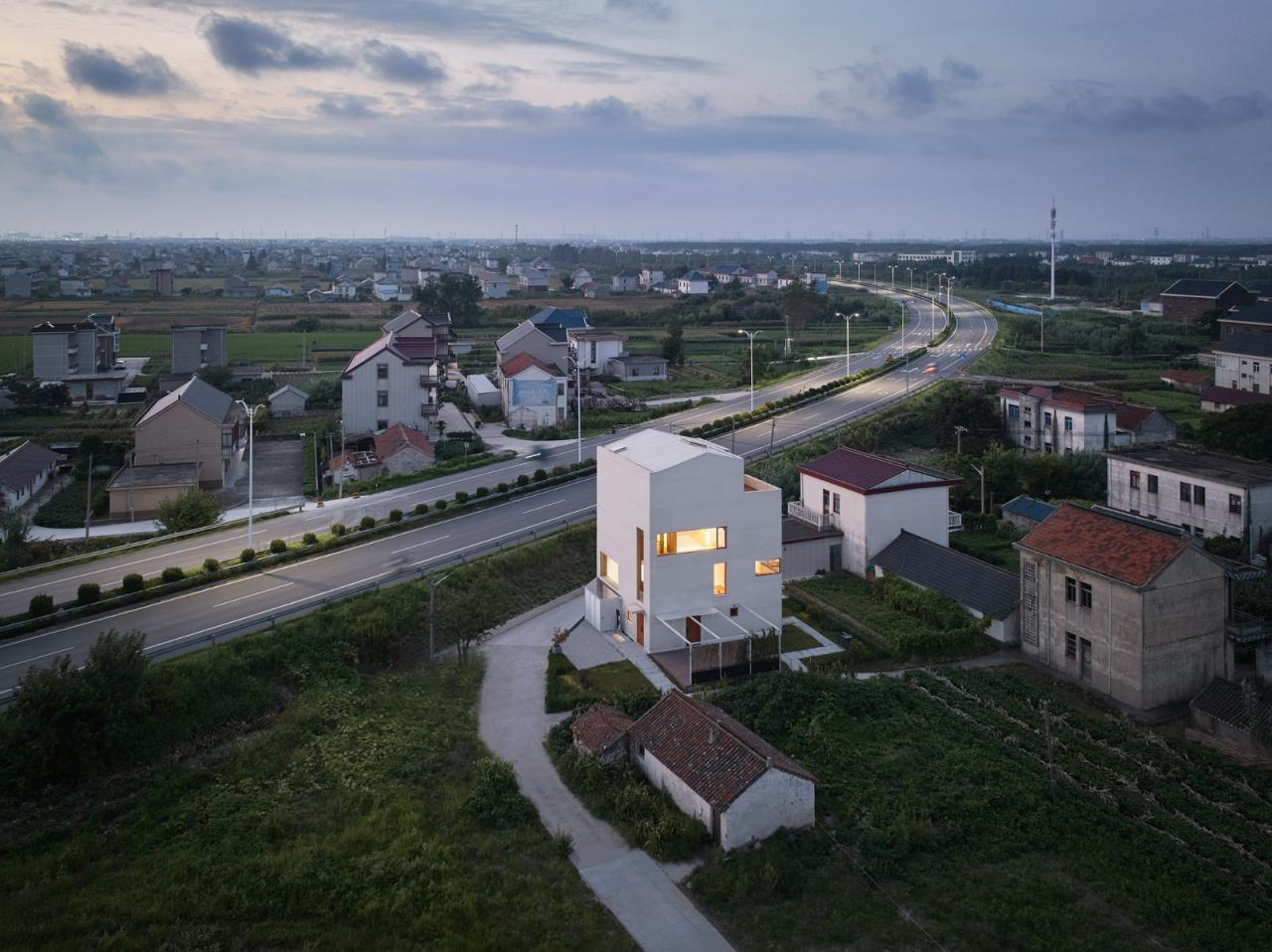 但我们依然在二层以上的空间里,预留了丰富的看与被看的关系。相对于一层的完全敞开,二层以上的互动则更加暧昧,通过一系列连续的通高彼此联系。“退休”之后的彭先生一家以炒股为主业,通高在空间图形上如同股票连续涨停的曲线,使新彭宅成为朋友们口中的“涨停之家”。“涨停”通高作为住宅风水的另类演绎,也会给这一家人带来更多的吉祥与好运。我们将这个住宅命名为Crossing House,就像它在鸟瞰图中所呈现的,一个位于交叉口的房子。回不去的乡村与无法告别的城市,我们正处在这样的交叉口,而这个房子的内部也是一个交叉口,通向两种全然不同的生活方式。
