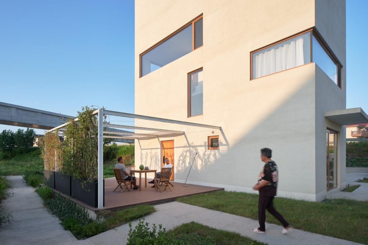 失去附属小平房之后的彭宅在气质上变得清冷,最终我们不得不接受了这座略显孤傲的房子。原先准备作为麻将室的附属平房以葡萄架的形式延续,彭老先生依然可以和邻居们在此打麻将,除了失去屋顶和围护,一切一如从前。这仿佛是对于彭先生一家“归园田居”的隐喻,这一个上下左右都由剖面拼合而成的建筑,是某种变化中的城乡异质混合的结果,尽管它看起来与老屋似曾相识,但又已经完全不同。