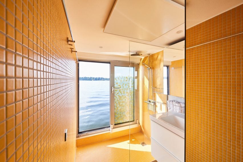 伦哈特说:“覆盖整个屋顶的一组太阳能电池板,以及每一侧的一块额外面板,使这艘船从3月到11月都能自己航行。”为了充分利用有限的空间,跨界工作室结合了多功能元素,在船内创建了可适应的房间。它们由防水橡胶地板和胶合板制成的家具统一起来。