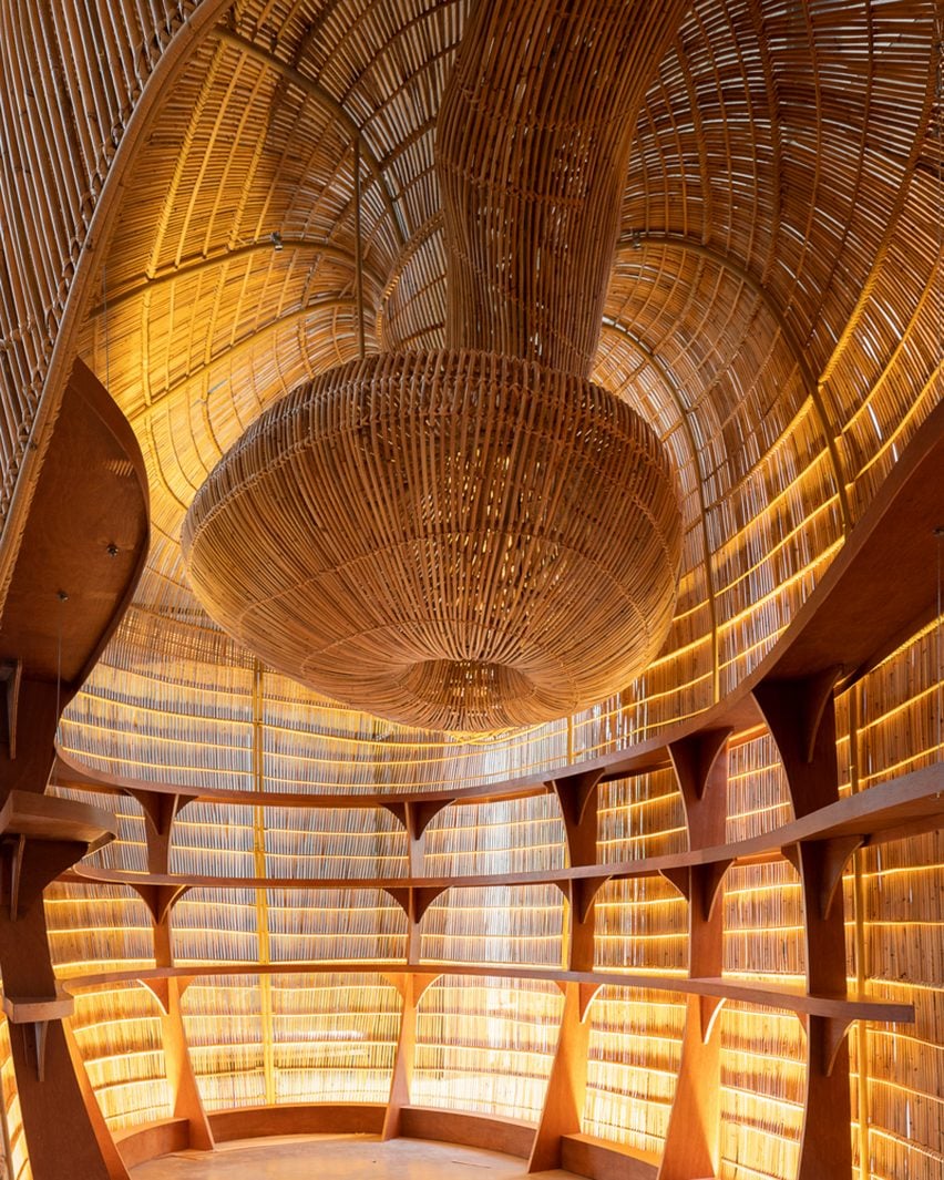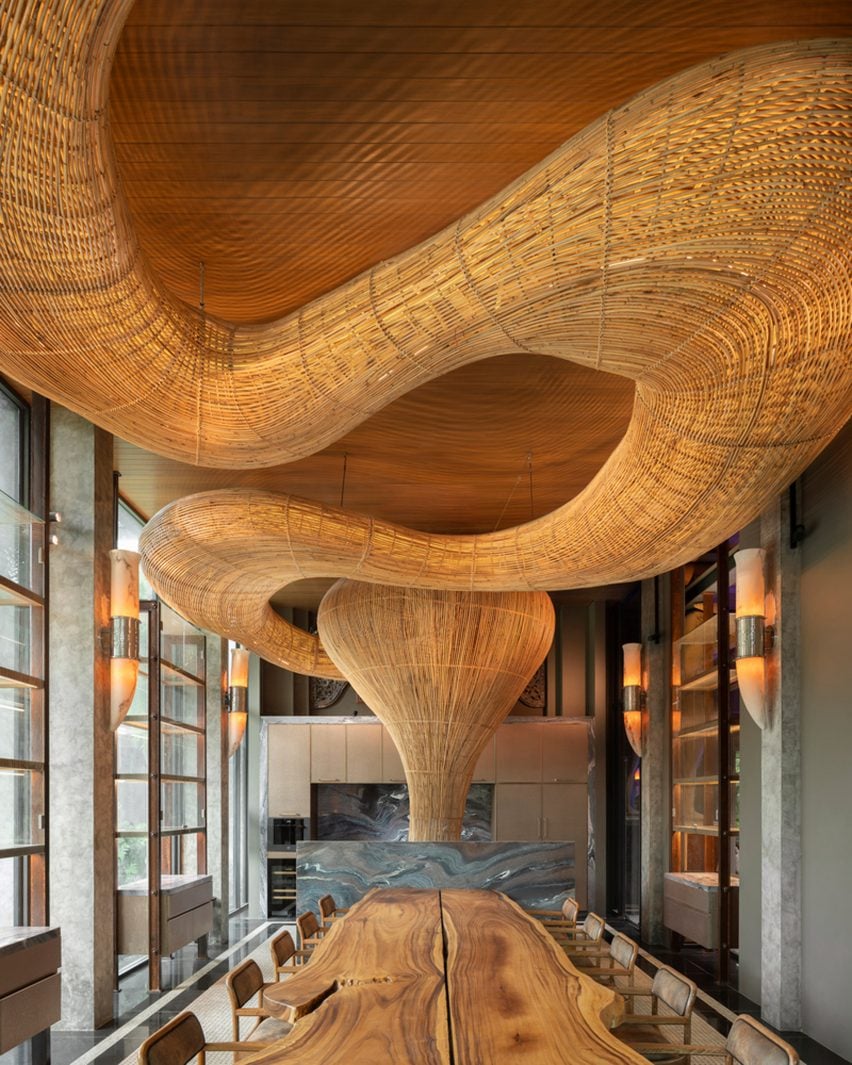 “进入建筑亚洲工作室”(EnterProjectsAsia)在泰国清迈为一位收藏家完成了一个私人画廊,其特色是一个起伏的藤条结构,该结构由一种算法设计,可以在建筑内外穿梭。