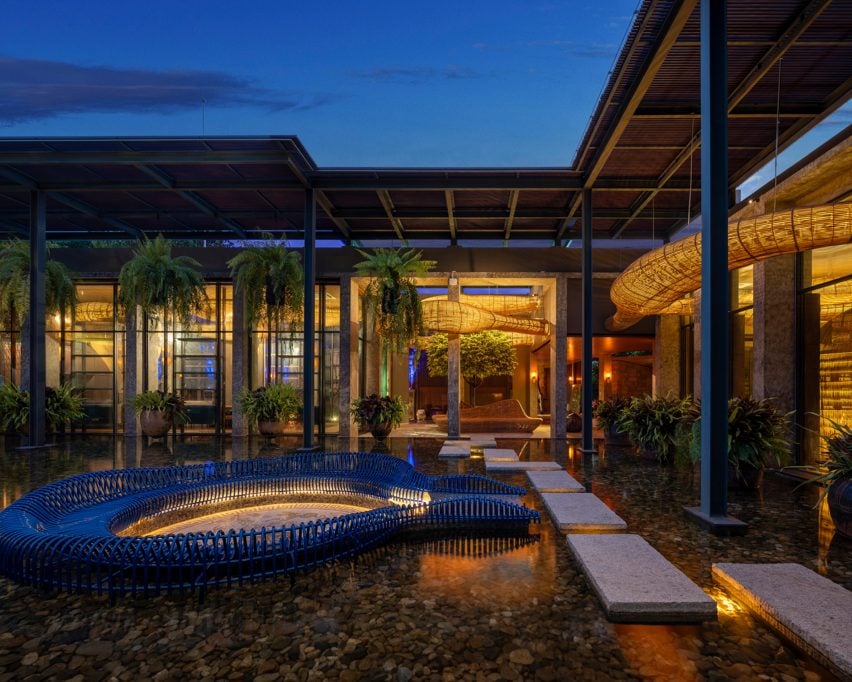 这座2000平方米的综合画廊包括花园、水景和一系列展馆,用于展示主人收藏的银器、精美瓷器和陶器,其中包括据报道是东南亚最大的威奇伍德瓷器(Wedgwood)收藏。以泰国普吉岛为基地的“进入建筑亚洲工作室”为该项目制定了一份整体方案,涵盖了从空间规划到照明和家具的各个方面,流动的藤结构为整个方案提供了一致的元素。
