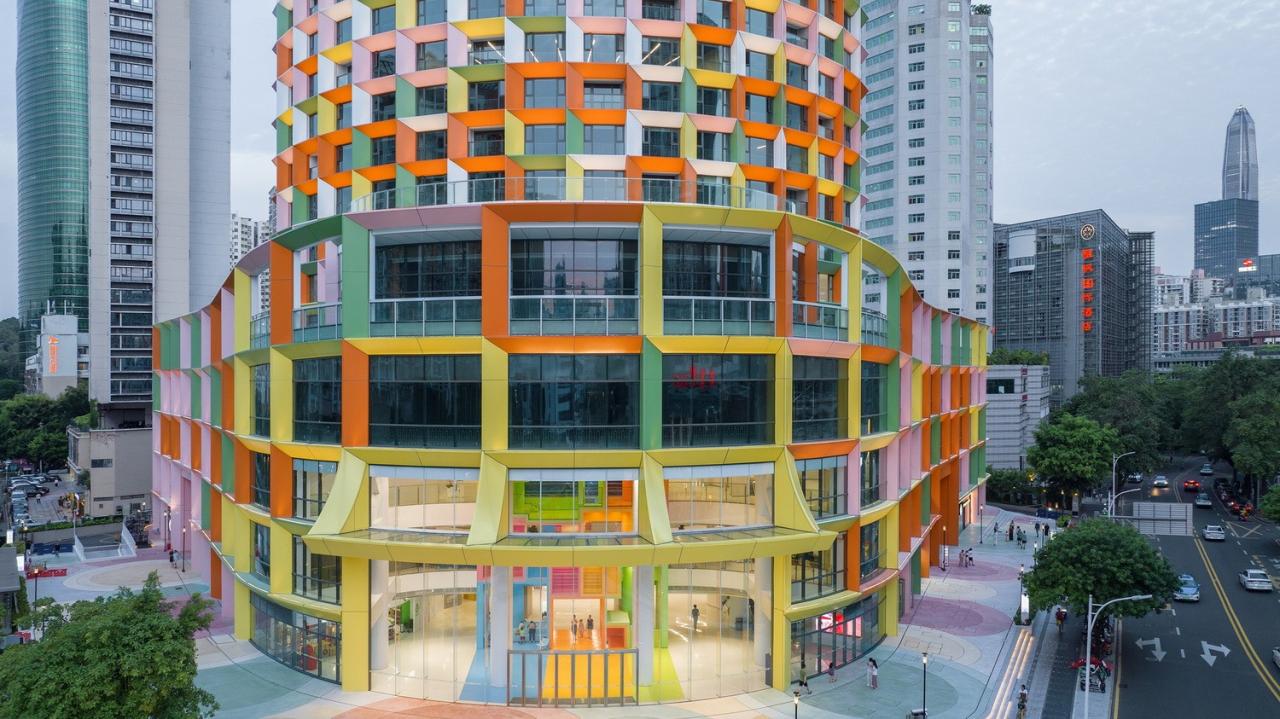 深圳妇女儿童大厦的改造已经竣工,MVRDV将这座老旧的存量建筑改造成一座充满活力、色彩缤纷的摩天大楼,内设多种妇女儿童公共服务设施及酒店、餐饮等配套:这座综合功能的高层建筑囊括了儿童探索馆、图画书博物馆、婴幼儿托育、妇儿剧场、妇女展馆、家庭服务以及相关配套设施。建筑以其色彩绚烂的外观,为深圳福田区带来耳目一新的地标。更重要的是,这座 100 米高的改造项目为深圳正在兴起的“适应性再利用”城市更新风潮树立了重要的典范。