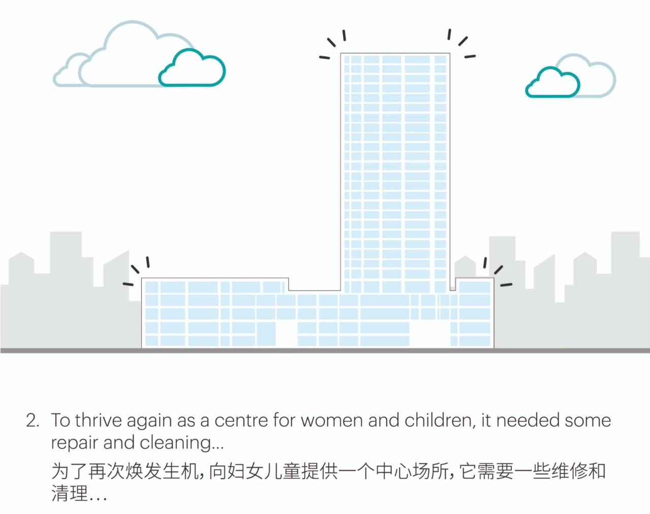 塔楼始建于 1994 年,彼时正逢深圳第一轮迅猛发展的时期,随着时代的发展和妇女儿童家庭需求的变化,塔楼外立面的环境效率日益落后于现代标准,内部的功能结构设计也难以满足新的需求,更有部分设施出现了老旧破损的情况。