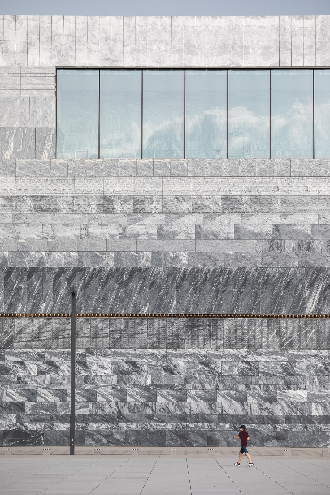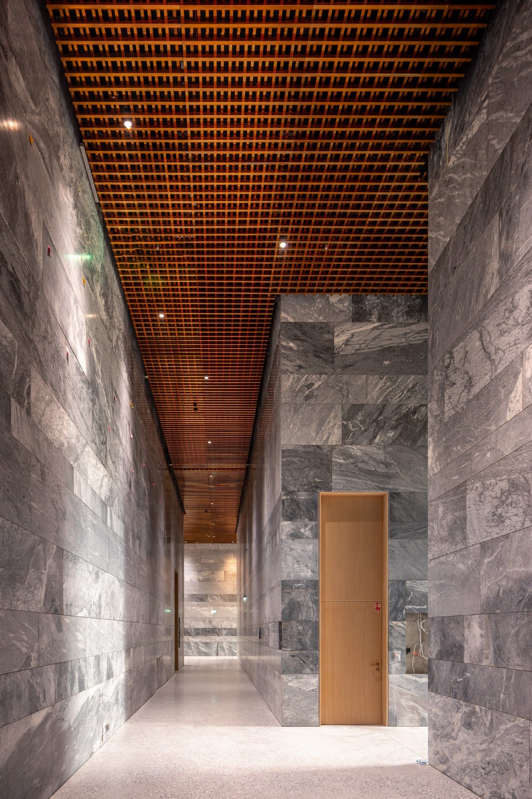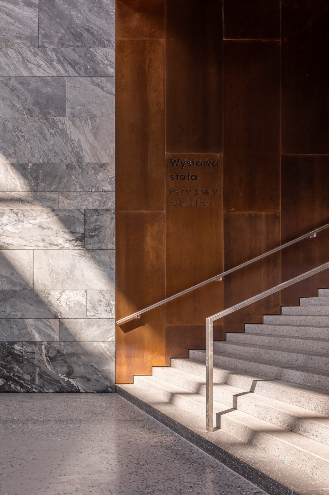 所有石板都经过精心构思,有的以重复的形式出现,有的则以镜像的形式出现。建筑师采用了六种不同的石材加工方法,使特定部分的色调和质地各不相同。建筑细节的装饰形式引用了建筑传统,是对整个设计的象征性补充。它们可以被解释为考古横断面上不同时期的文物。不过,它们并非直接引用,而是经过几何转换的空间图形,参考了格涅兹诺门的浮雕、哥特时期的水晶拱顶(如格但斯克的圣母升天大教堂)、克拉科夫圣西吉斯蒙德教堂的装饰或卡托维兹现代主义斯波德克竞技场的动机等图案。
