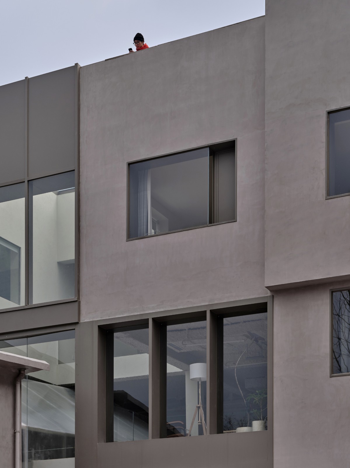 建造-多留点力气给后半程在乡村造房子有着与城市中截然不同的方式方法。因施工水平和设计认知上的差异,建筑师的身份更像是工匠,相较于设计,施工阶段会耗费数倍的精力,必须亲历从上到下的各个细枝末节。青年社在采用低技术、低成本建造策略的同时,依然需要设计师一同花费数月时间进行80多次材料打样。我们也在此过程中意识到了很多传统乡村建造手艺正在逐步退化、失传,例如七八十年代乡村建筑外立面常用的水洗石,在这里已很难找到技术熟练工。而将外墙材质改为黄沙石灰后,仍无法解决施工技术上的问题,最终只能选用不那么“乡村”的肌理涂料。外墙施工过程中,建筑师提高了驻场频率,同时跟过往项目里有类似经验的施工方进行沟通,从而协助工人师傅对涂料的色彩、肌理,厚度进行反复现场测试,制造出了一些与环境更相融的粗粝和不均质的手工痕迹,色彩也更趋向本地的山地红土。