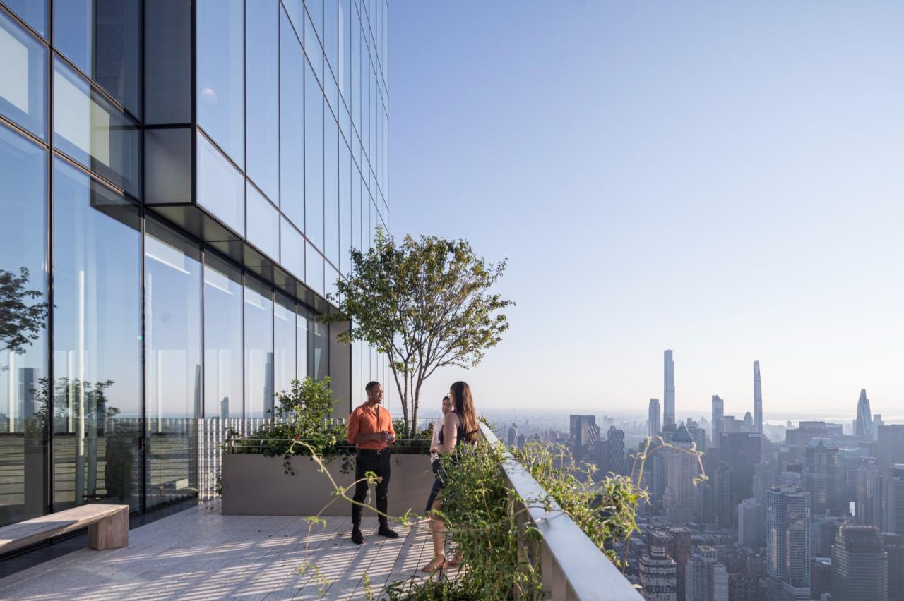 螺旋形建筑随着地块的分区围合而上升,体积也随之慢慢缩小。其阶梯式的设计语言与曼哈顿经典摩天大楼(如帝国大厦和洛克菲勒中心)的设计美学产生了共鸣,而其纤细的比例以及现代材料和细节的使用则体现了当代高层建筑的设计特点。