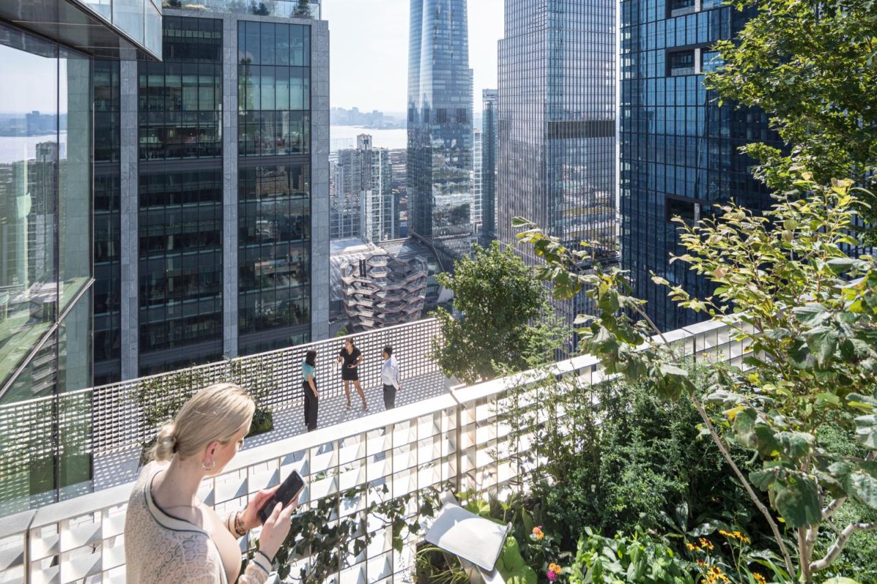 The Spiral 大约有 13,000 平方英尺的室外空间,在纽约市海拔 300 英尺或 300 英尺以上的地方还从未有过如此规模的景观。地面覆盖物上的大多数植物品种都是美国大草原上的原生植物,因此可以抵御大风和干旱。