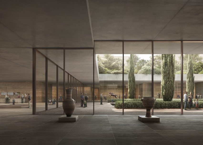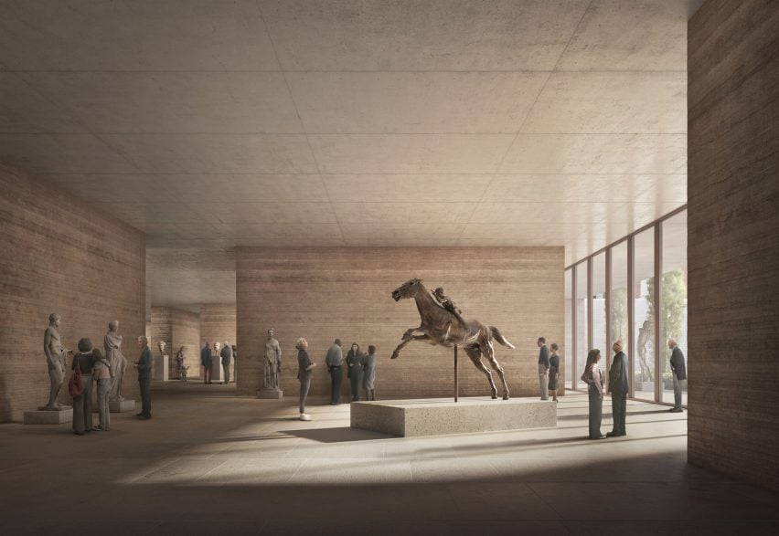 这将使博物馆的主要入口向前延伸到街道水平,并让路人可以瞥见博物馆内部,有助于重建博物馆与城市的联系。扩建部分的设计采用了“纯粹而清晰的建筑语言”,以避免分散对原始建筑的注意力,而夯土墙旨在营造一种置身于地下的感觉,与考古展览的性质相呼应。