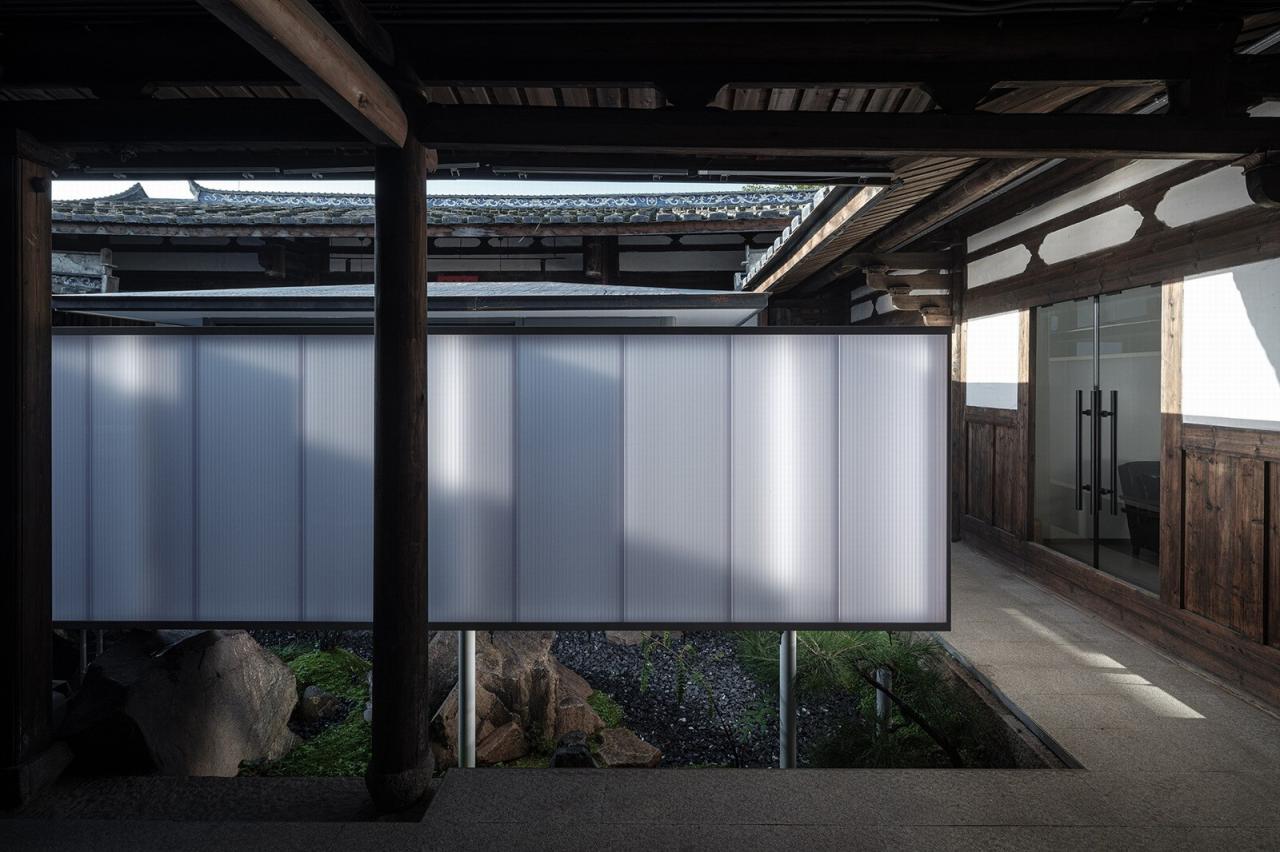 正堂设计成图书馆,用玻璃围合成开敞明亮具有轻盈感的方形空间,通过影射自然光线和老建筑的历史痕迹。建筑师旨在平衡古建与新空间新旧融合相生。正堂也是古厝的精神内核,“书房”的介入也着重隐喻了华宇一塑企业迎天下客的初衷。