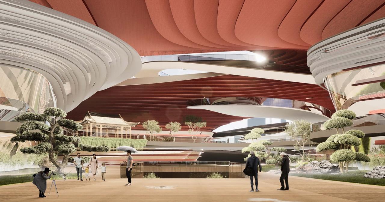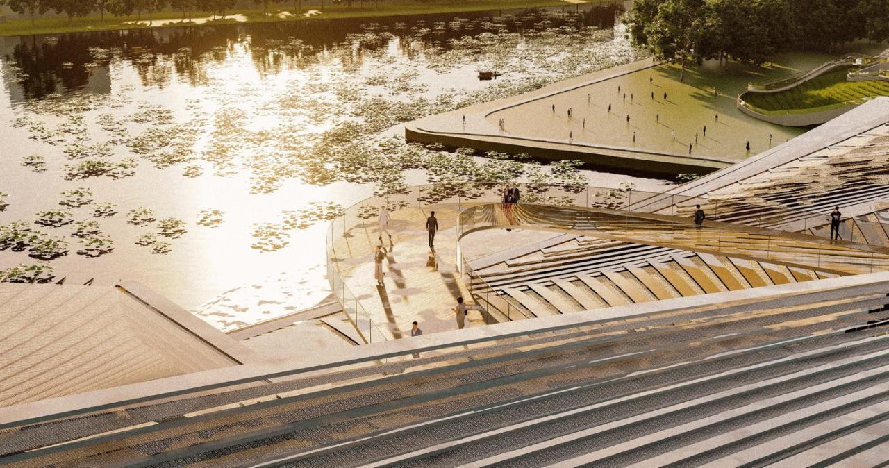 景观设计尊崇戏曲“园林”的打造,室外观演,设计大型观景平台空间和设置丰富的游廊动线,我们期望戏曲中心秉承中国“戏曲大园林”的概念,将传统戏曲文化与建筑相融合,市民游园自然而然置身于戏曲园林之中,打造景荣共生的理念,让民众沉浸式体验戏曲文化的魅力与精髓。