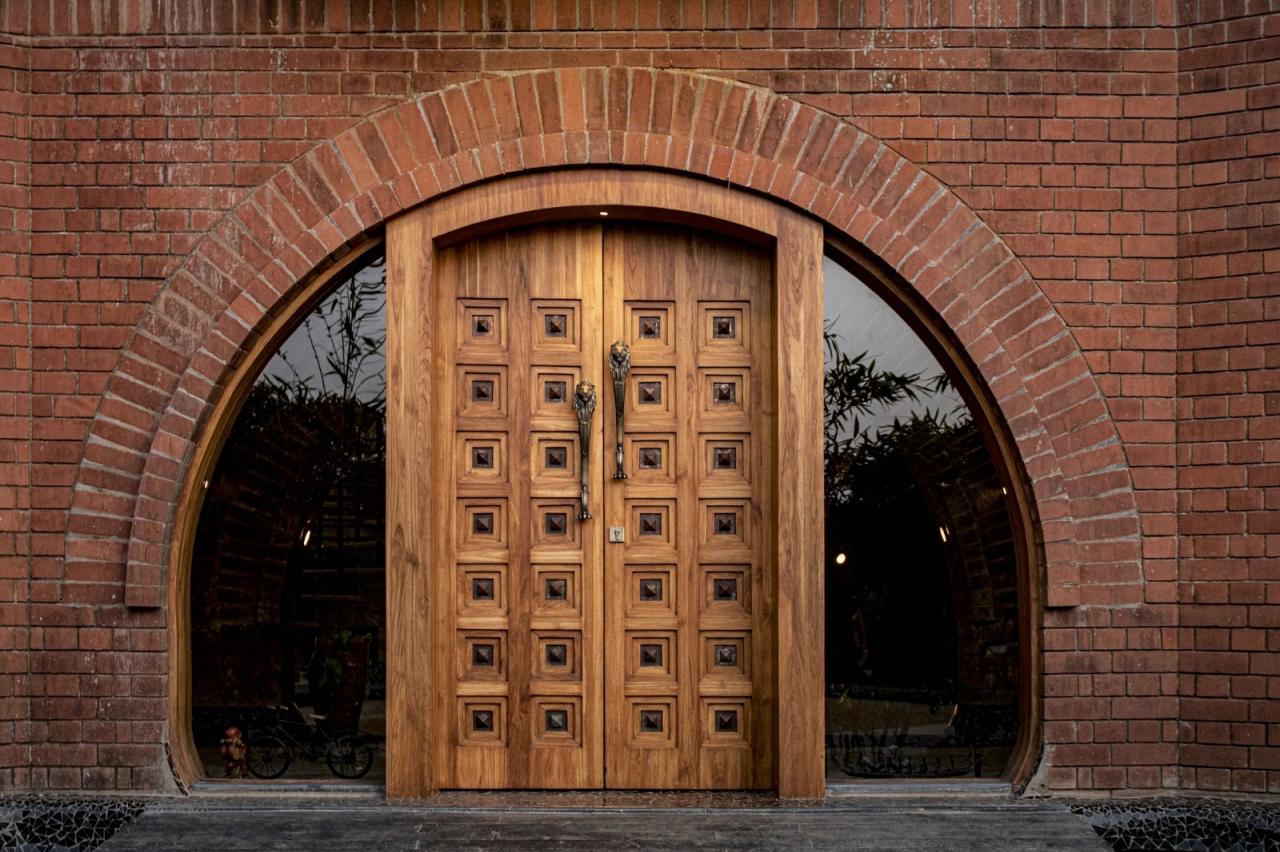 材料色调为了达到简洁和田园风格的效果,我们决定采用最简单的天然材料色调。黑色玄武岩石基、土红砖墙、黑瓷马赛克屋顶、科塔石地板和黑瓷马赛克墙边、黄色杰萨尔梅尔石中央楼梯、米色沙哈巴德石露台、黑色河沙面花岗岩石材和黑色玄武岩石厕所墙壁成为房屋的调色板。材料的颜色–红色、米色和黑色成为中心主题。