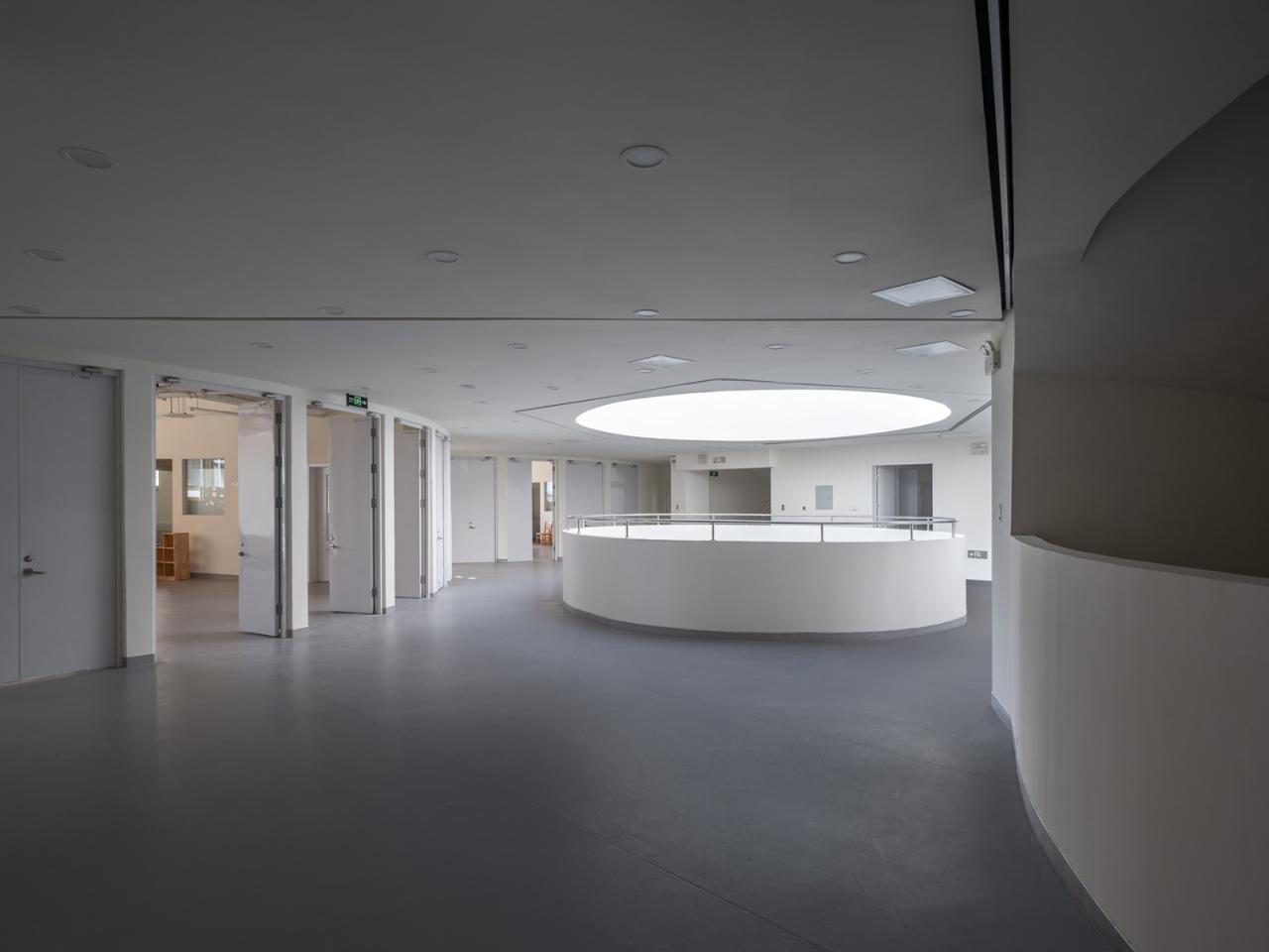 每层的房间都围绕着一个中央公共空间排布,班级单元可以通过一组门打开。当天气欠佳时,整层楼可以完全敞开,变成一个大房间。在班级单元内,辅助房间也在使用允许的范围内开放,并将午休区域融入到活动空间中。