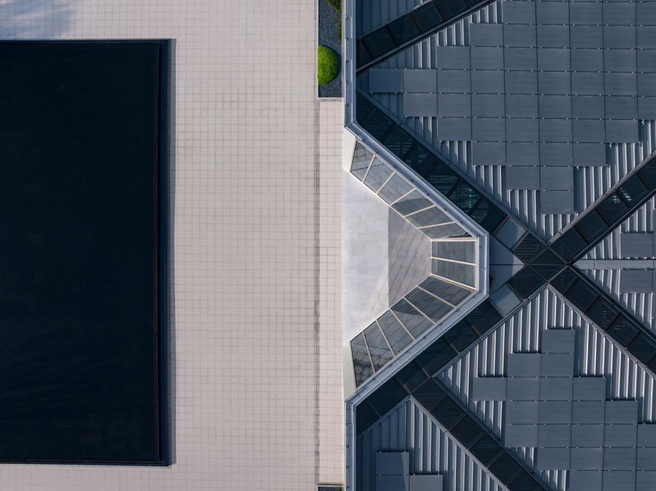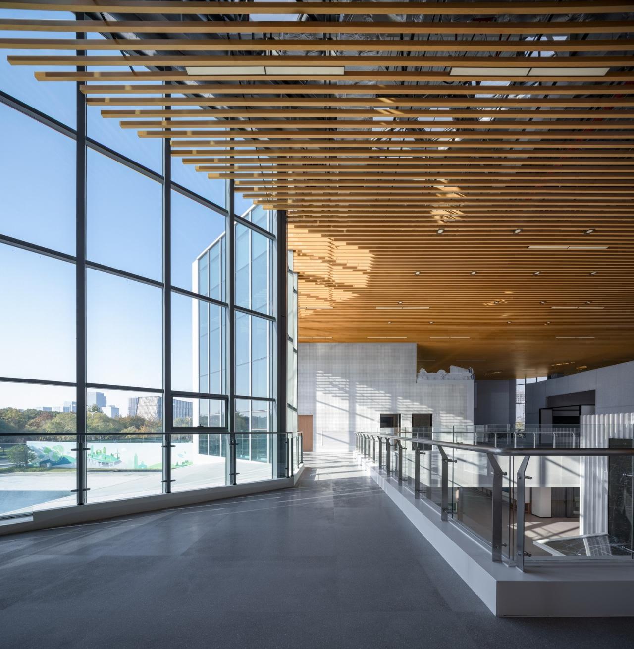 建筑入口为自然放大的三角形切角,金属雨棚的形态与之呼应,形成一种强烈的几何引力,将光线、人流和外部景致吸引进来,自然连接到内部的贯通门厅。建筑在规划、结构、构造、设备、材料、运营上,都最大程度的体现了低碳环保的营造理念,成为新片区最符合建设主题的展品。我们将建筑的生成看作一个动态的演绎过程,在其中寻找一种人造体与自然、人造体与文化的联系。