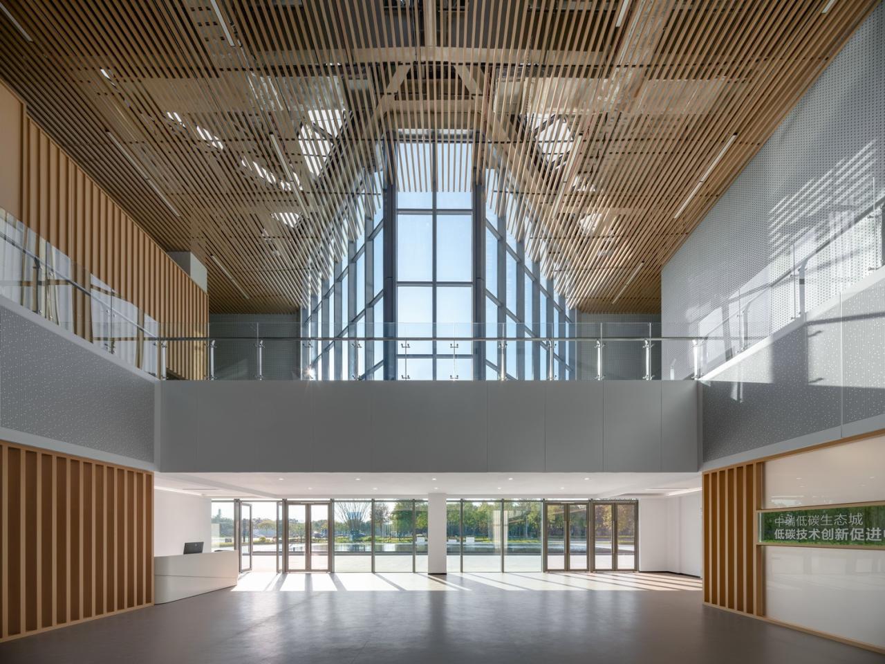中瑞生态城低碳技术创新促进中心的设计体现出生态友好、可持续发展的理念。是一个创新且具有挑战性的任务。通过绿色建筑材料、高效节能技术、可再生能源利用和生态景观设计,建筑成为一个引领公众走向更加可持续的未来的典范。同时,该项目通过教育和互动性的设计,来传播环保知识,促进人们参与到保护环境的行动中,使人们树立环保意识,共同构建更美好和谐的城市。
