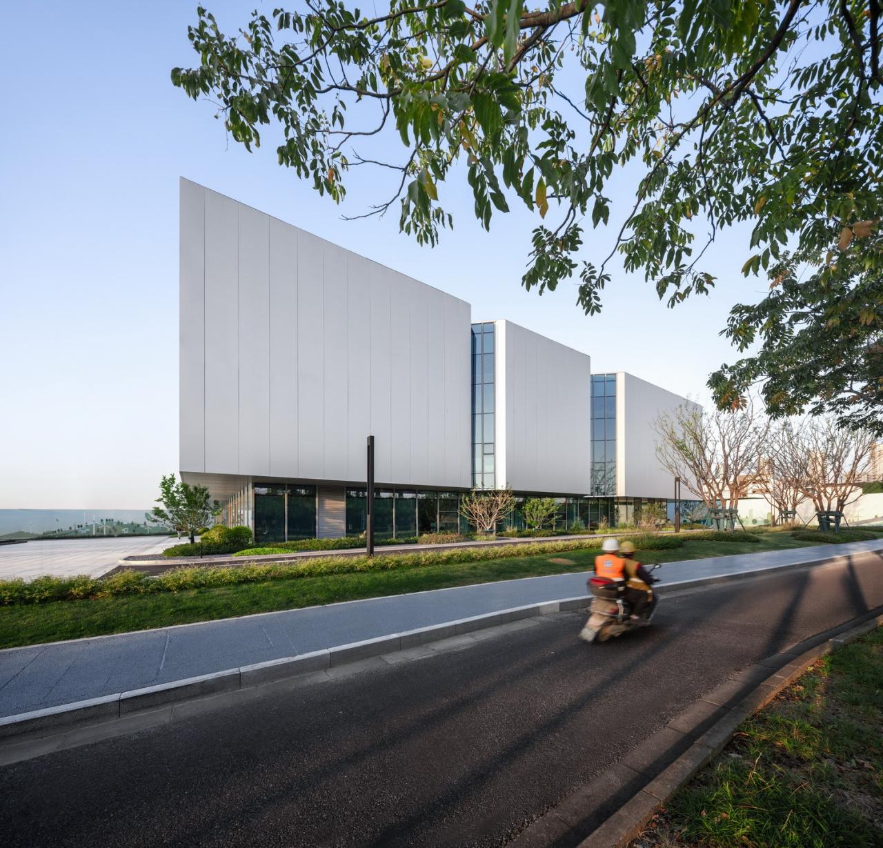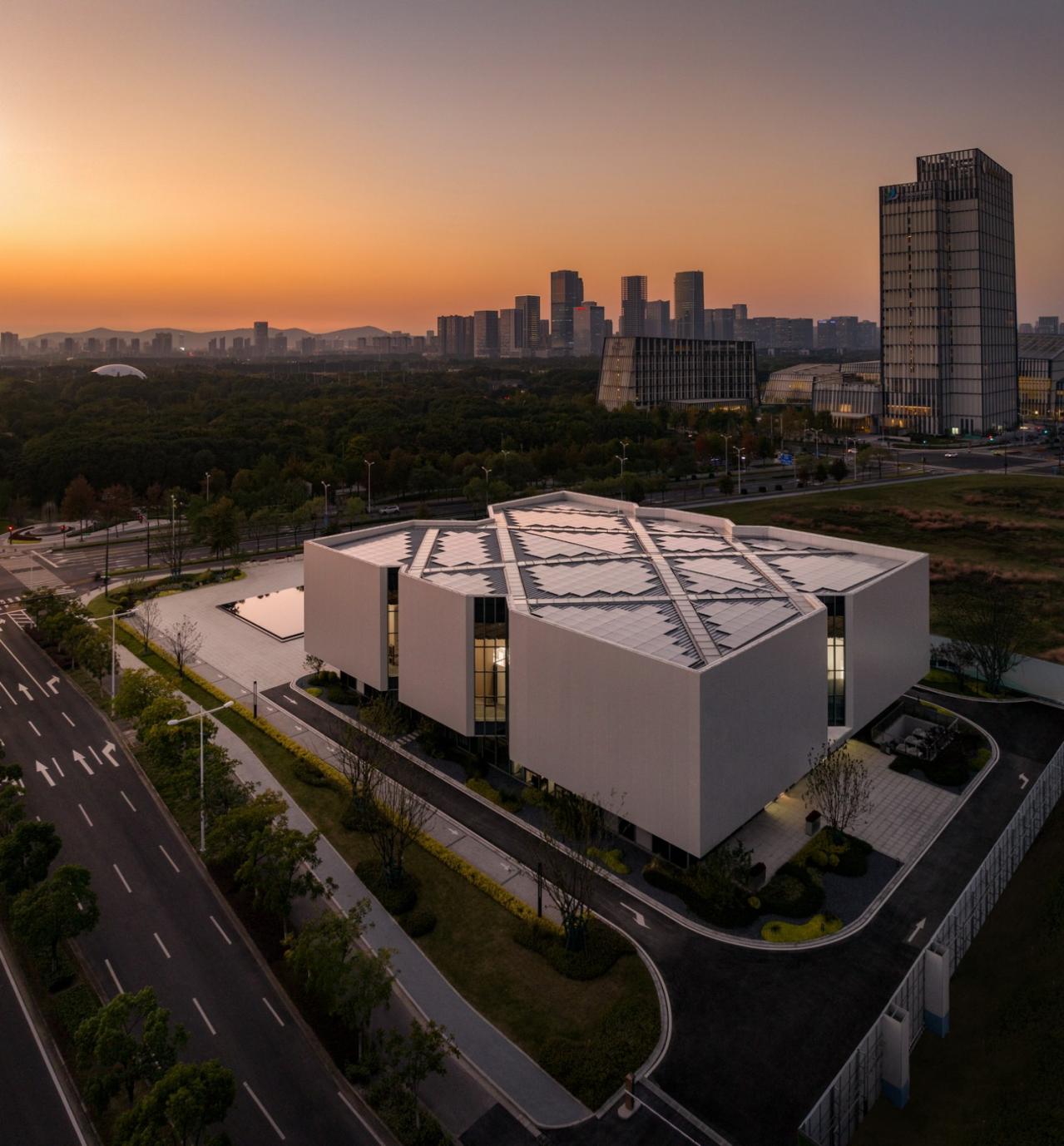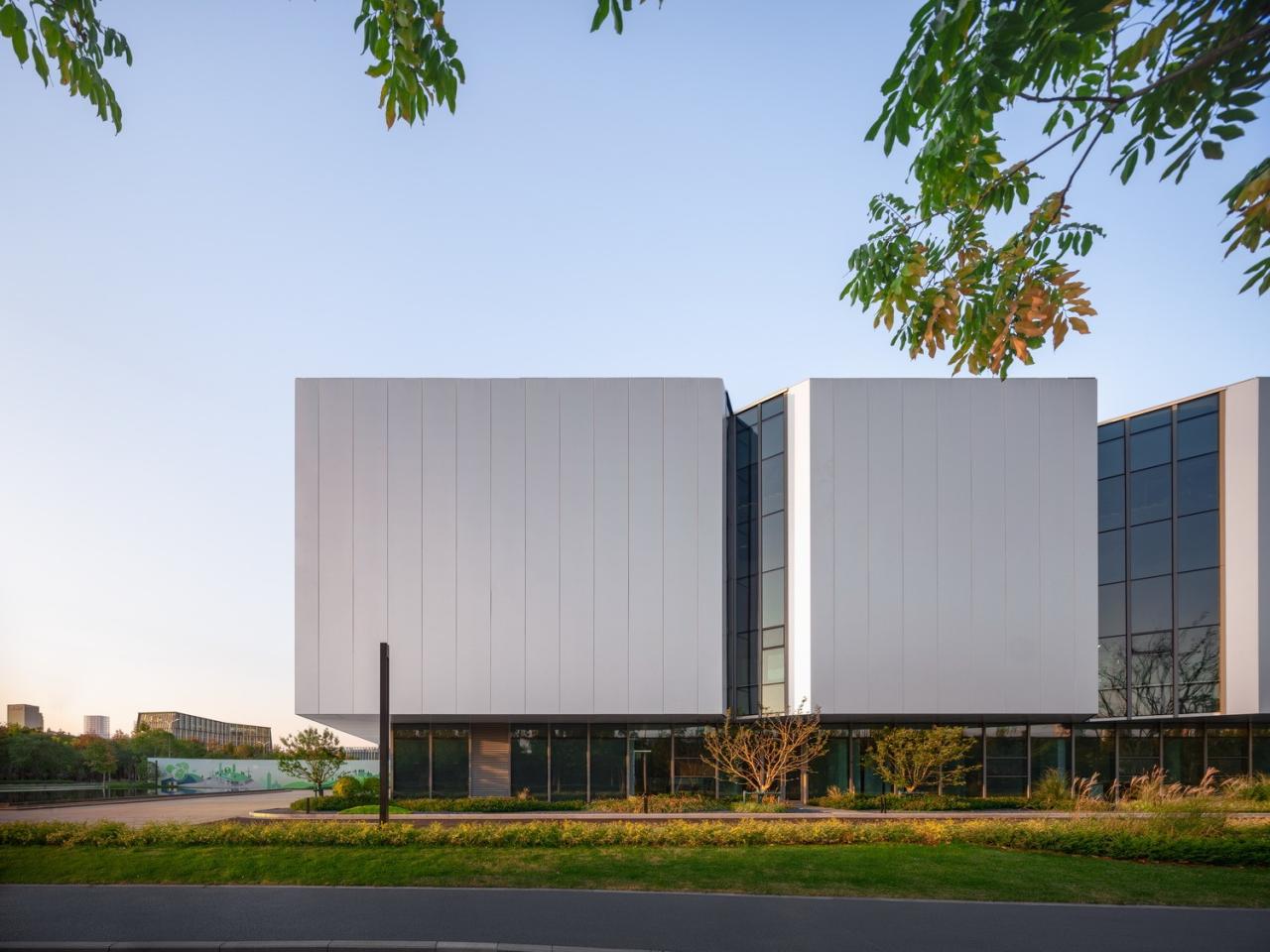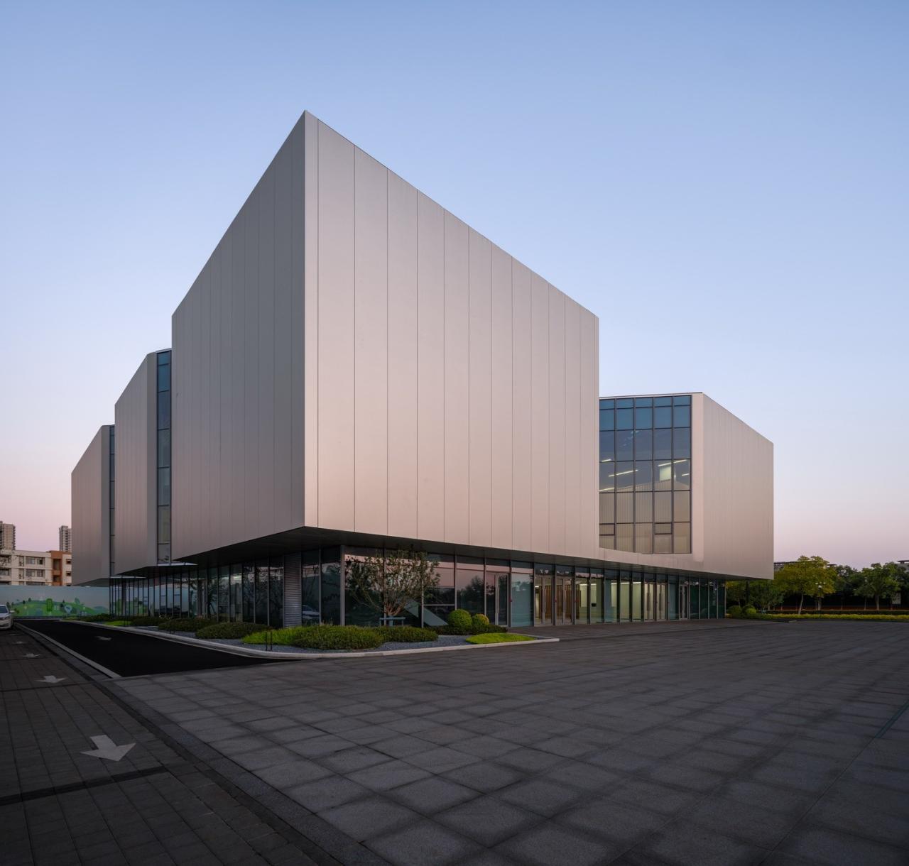 建筑位于清源路与清舒道交叉口东北侧,占地7500平方米,建筑面积3735平方米,项目建设达到绿建三星标准,装配式比例达88%。采用极简设计手法,以一个悬浮矩形体量容纳所有功能。结构采用全钢预制,超高的装配比例,使建筑在不到四个月的时间内就建造完成。全金属包裹的建筑体,被穿越的线条切割开,犹如裂开的岩石,透射出内部迷人的光。