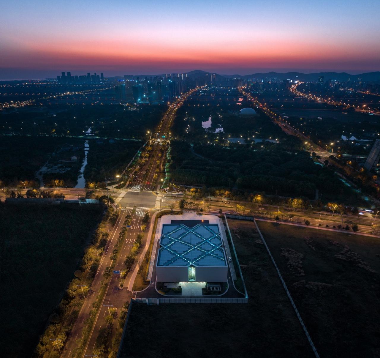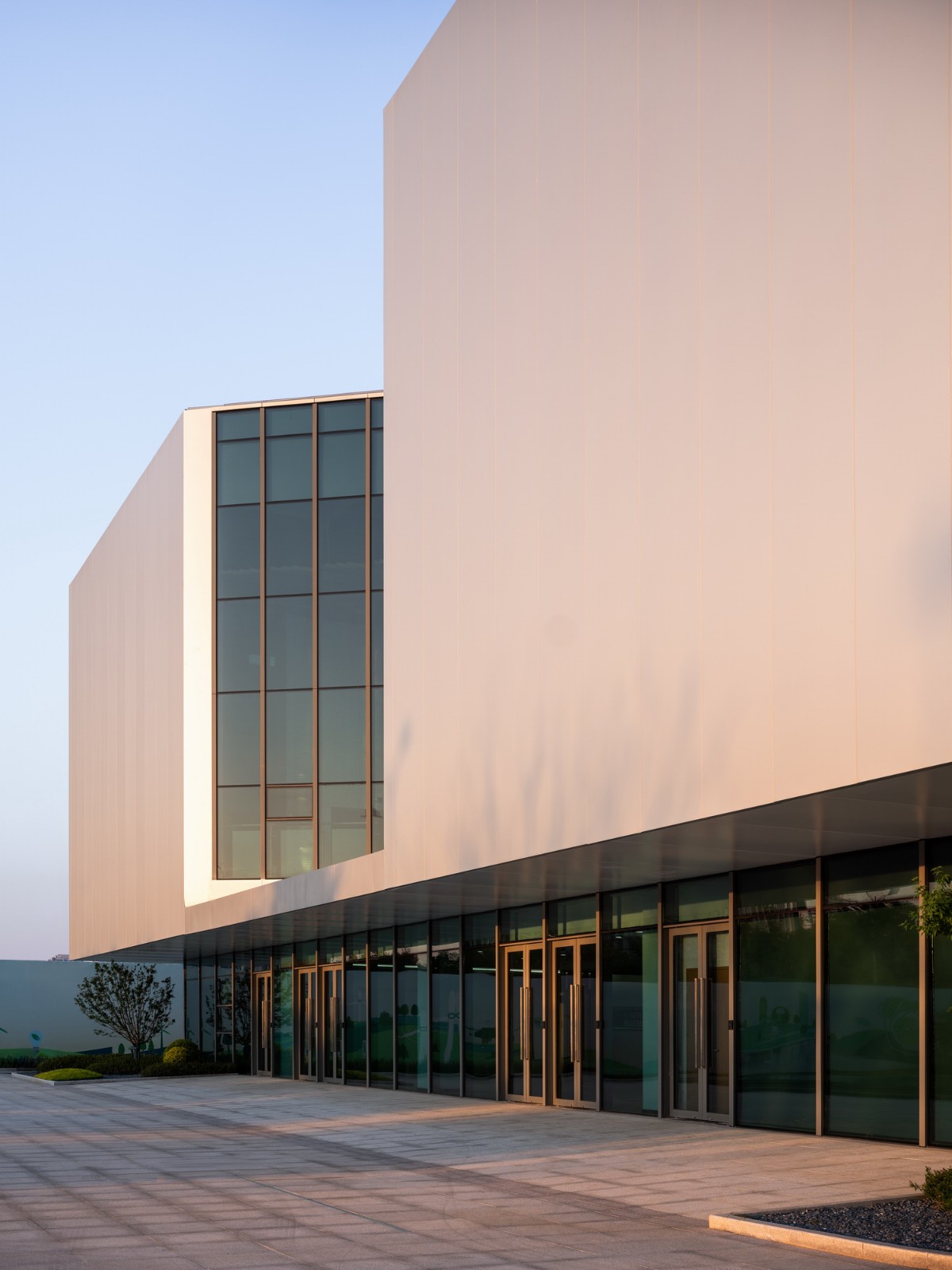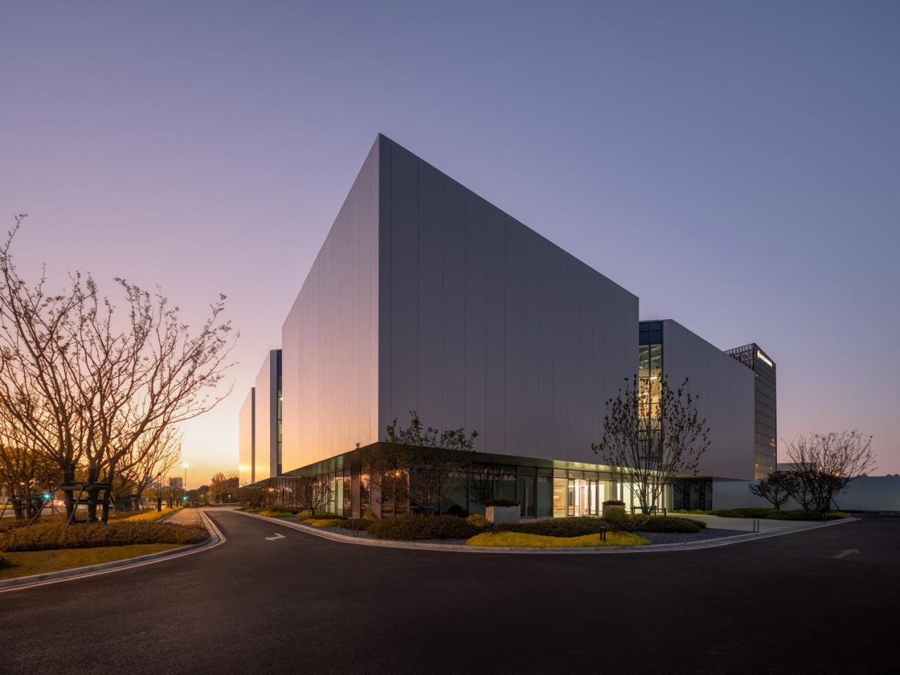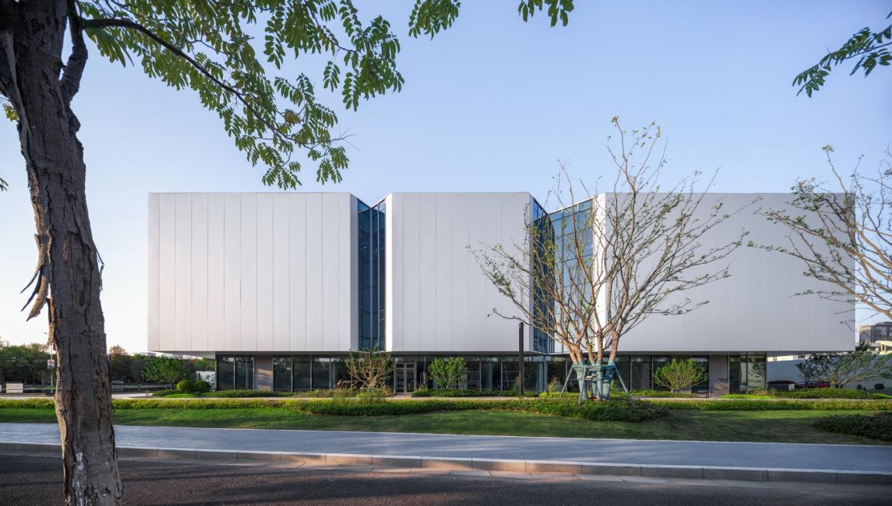 建筑位于清源路与清舒道交叉口东北侧,占地7500平方米,建筑面积3735平方米,项目建设达到绿建三星标准,装配式比例达88%。采用极简设计手法,以一个悬浮矩形体量容纳所有功能。结构采用全钢预制,超高的装配比例,使建筑在不到四个月的时间内就建造完成。全金属包裹的建筑体,被穿越的线条切割开,犹如裂开的岩石,透射出内部迷人的光。