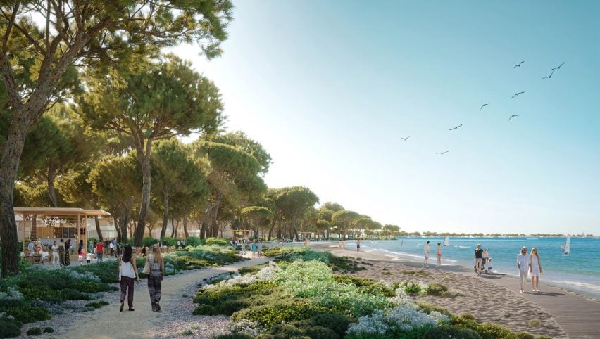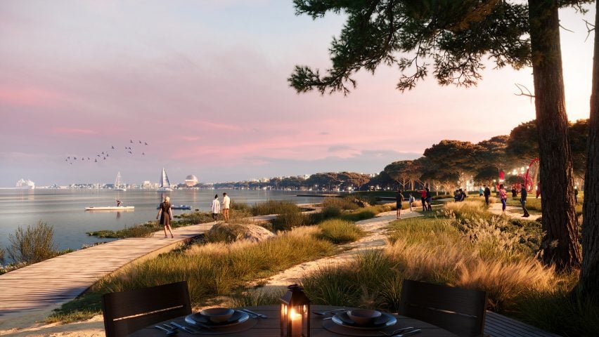 福斯特工作室发布的效果图还显示,在海滨建造了一个海滩和一条木板路,这将取代目前的工业景观。海滩两旁将是一系列木制结构的餐馆和咖啡馆。将沿着海岸线延伸两公里。