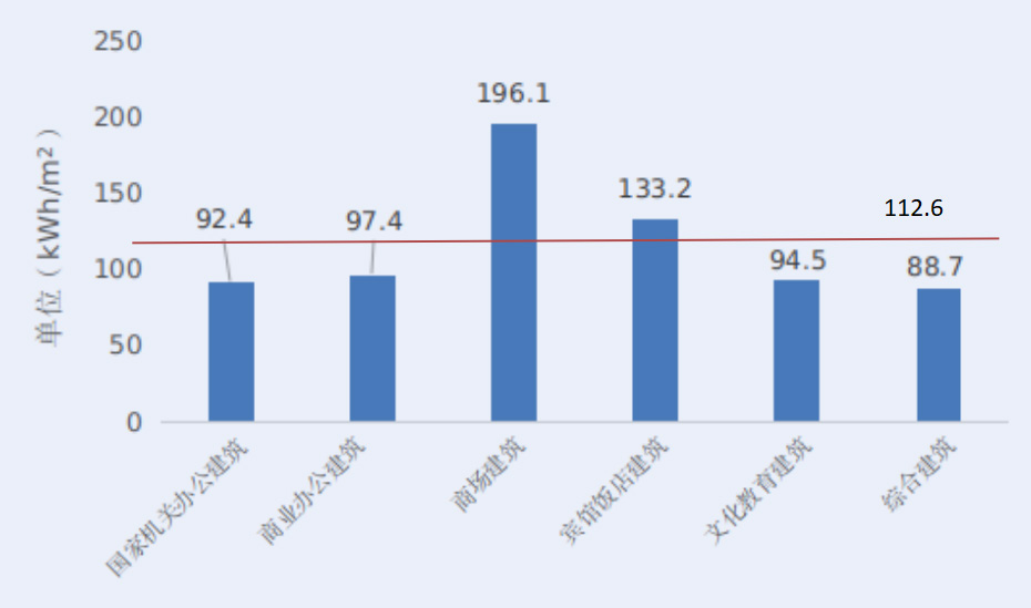 截至 2022 年底,深圳市接入能耗监测平台的国家机关办公建筑和大型公共建筑累计达到 1032 栋,监测建筑总面积约 6676 万 m2,监测建筑在线率常年保持在 90%以上。根据监测结果,编制完成《2021 年大型公共建筑能耗监测情况报告》。分析表明,2021 年深圳市全市监测公共建筑单位面积用电指标为 112.6kWh/m2,其中 2021 年商场建筑单位面积用电指标最高,为 196.1kWh/m2,综合建筑单位面积用电指标最低,为 88.7kWh/m2。