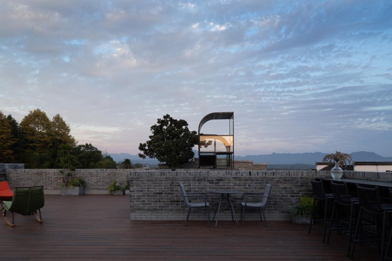 确定原则后,我原本想做一个与周边建筑极度反差的现代建筑。但是政府主管部门批复“碧山村作为传统古村落,他有风貌保护原则,必须要有徽式建筑的元素。”但是我们并不想复刻一个传统的徽式建筑,形式上的传承既无新意和突破,也不符合当代人的生活使用习惯,我们更希望传承的是它的一些精神内核而不是表象和形式。于是“如何将传统建筑元素与现代形式及生活方式相结合?”一直都是我们重点思考的问题。